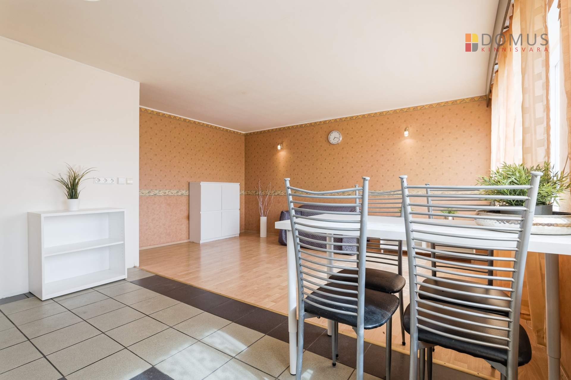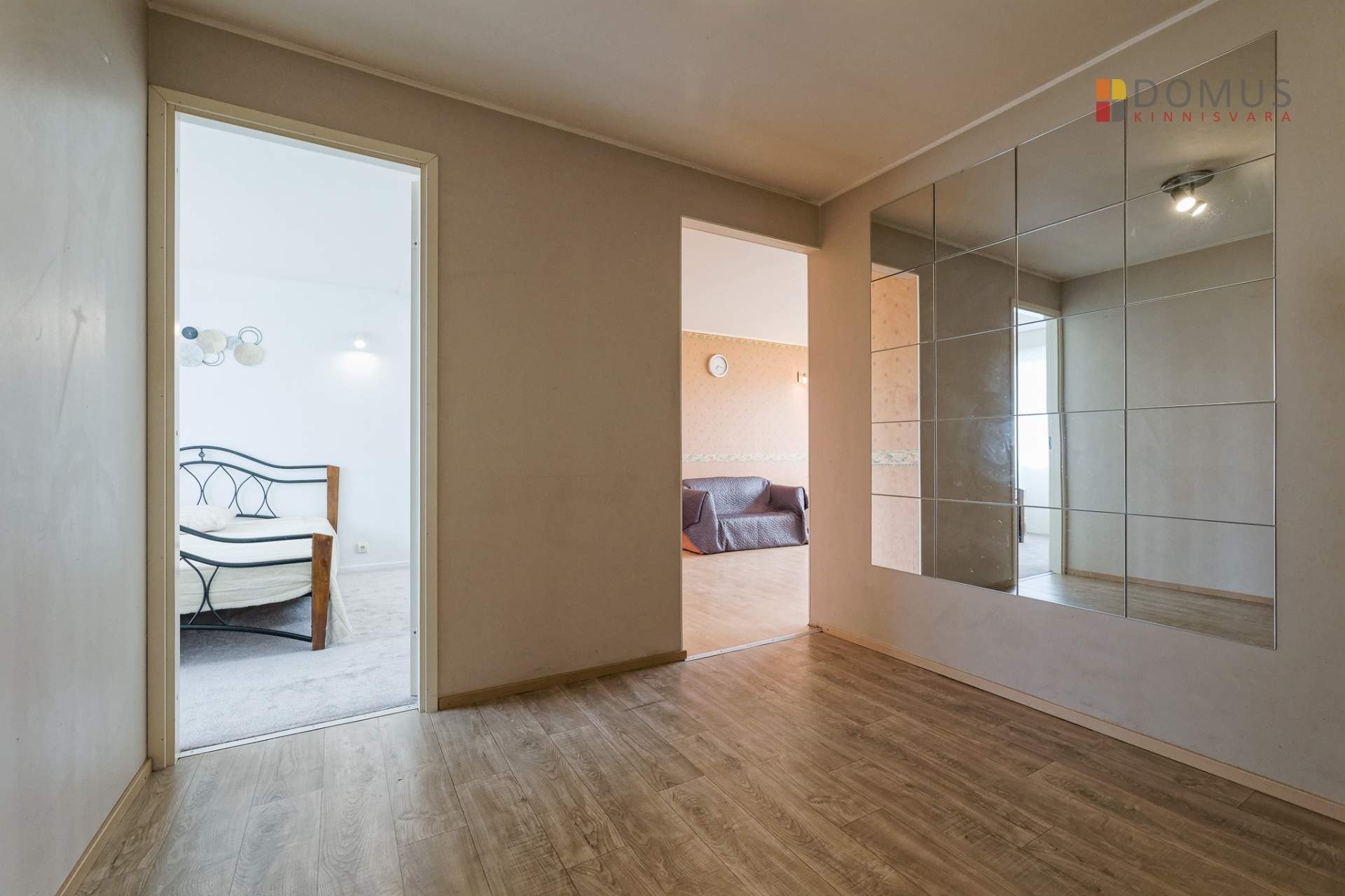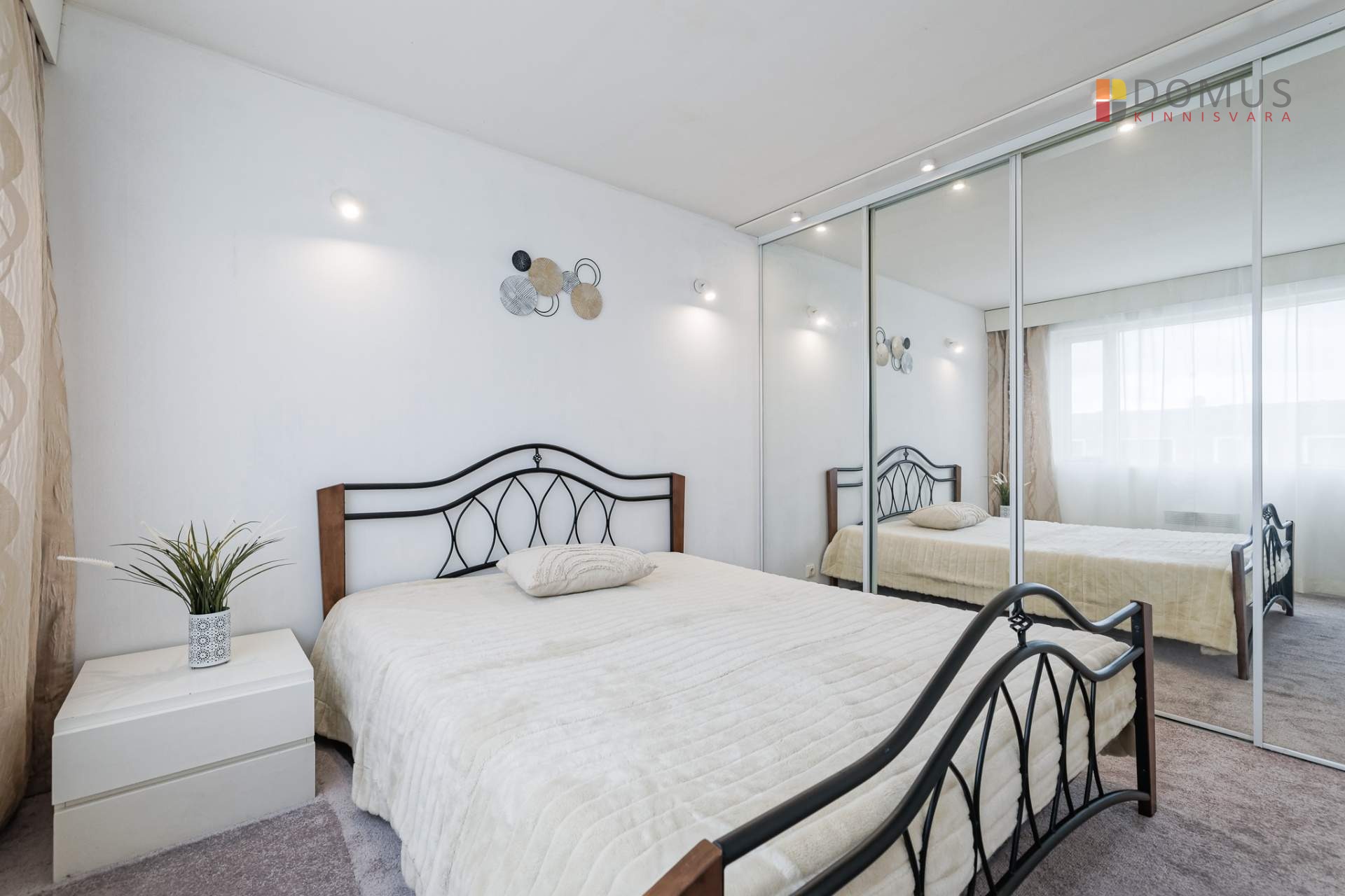 Elutuba jagab suure toa mõtteliselt kaheks, kus eespool on avar suur tuba ning teisele poole jääb köögiosa. Elutoas on hubane nurk diivani ja kohvilauaga, kus saab mõnusalt telekat vaadata. Kohe kõrval on avatud köök koos vajalikuga. Magamistuba on valgusküllane, tuppa on sisseehitatud maast laeni peeglitega mahukas kapp ja voodi. Lastetuba on ruumikas, põrandal vaipkate. Korteril on lisaks suur panipaik. Majas on lukustatud koridor.