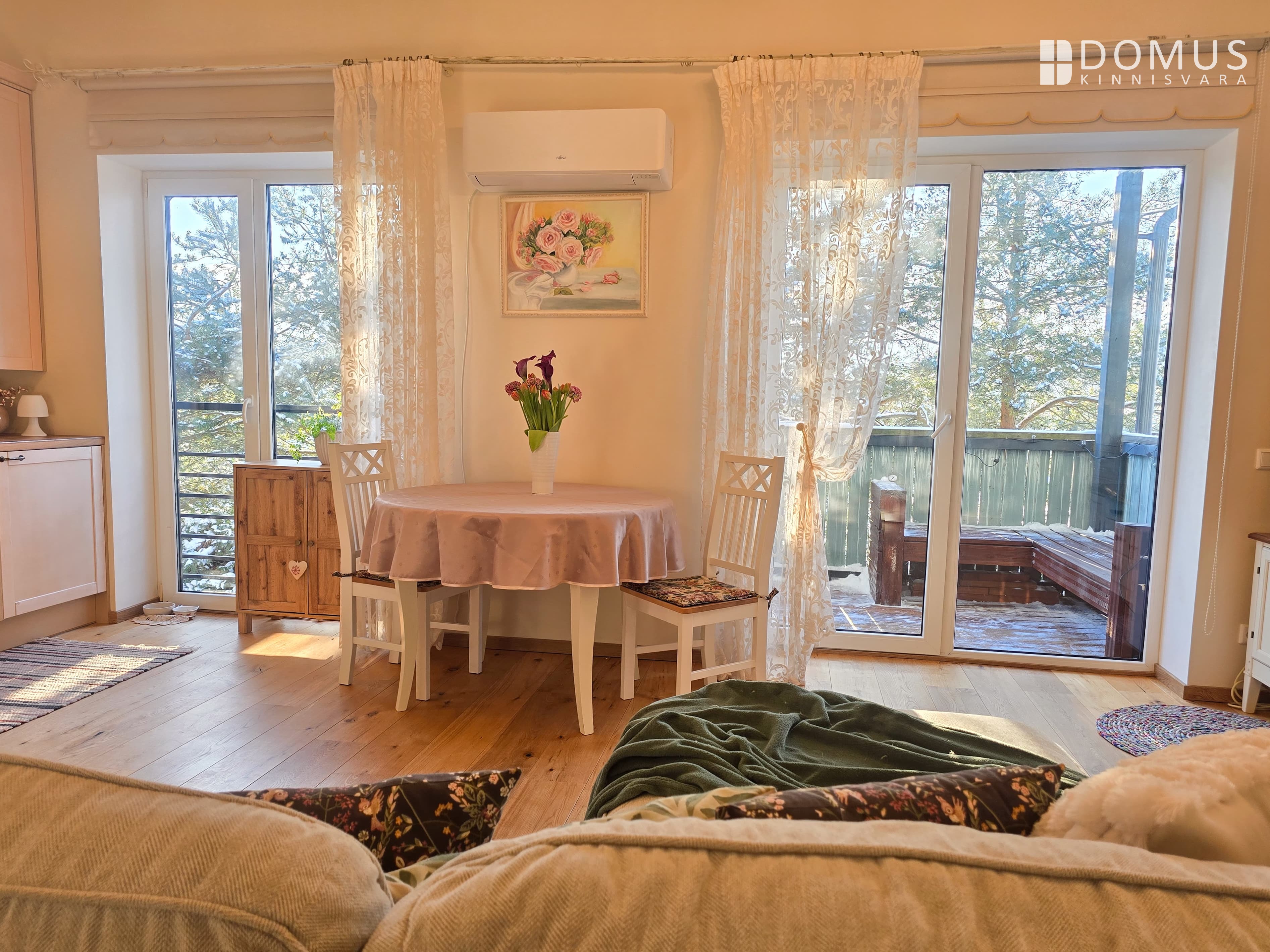 5,5 m² rõdu, kuhu ulatuvad kõrged männid- luues mõnusat varju
