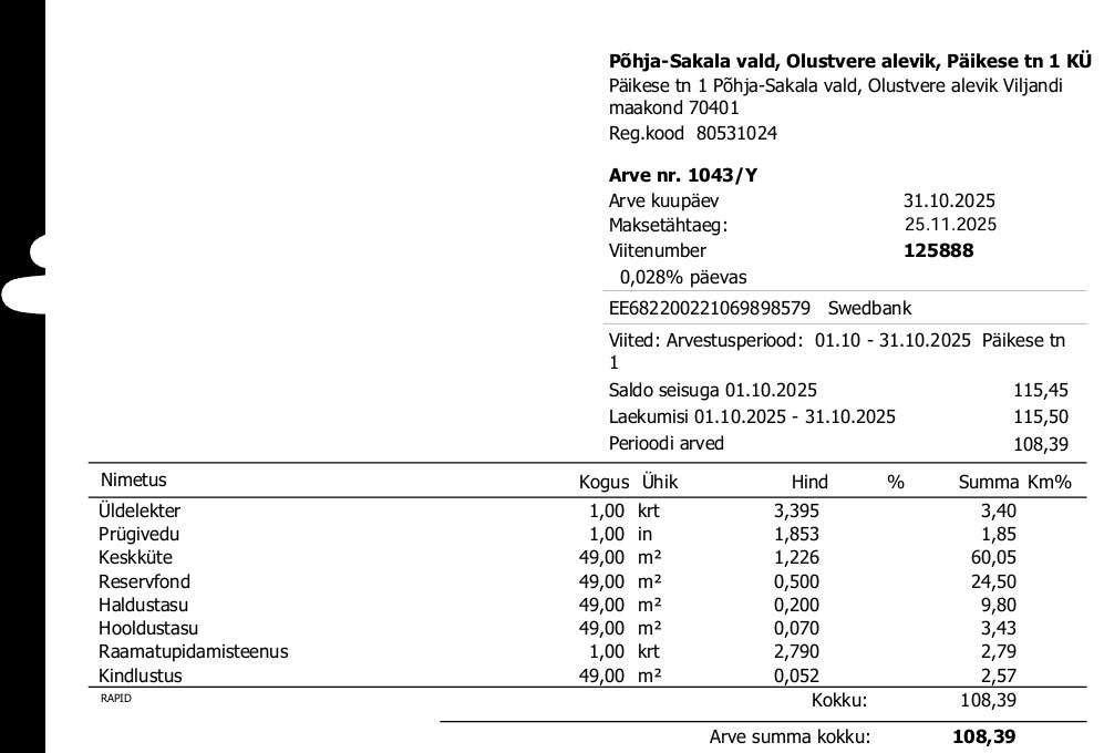 Kommunaalarved leiate kuulutuses olevate piltide seast (lõpus).