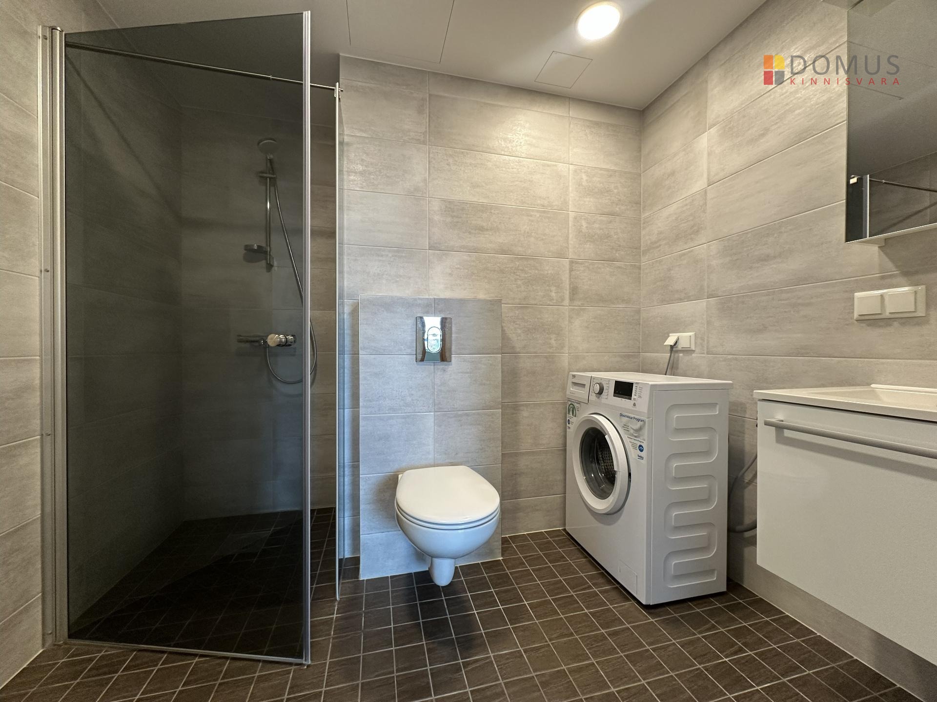 – Siseviimistlus: heledates toonides modernne stiil, naturaalne tammespoon-parkett, kõrged aknad ja laed loovad avarust ja valgust. Vannitoas keraamilised plaadid, dušinurk, pesumasin, kapiga kraanikauss ja peegel