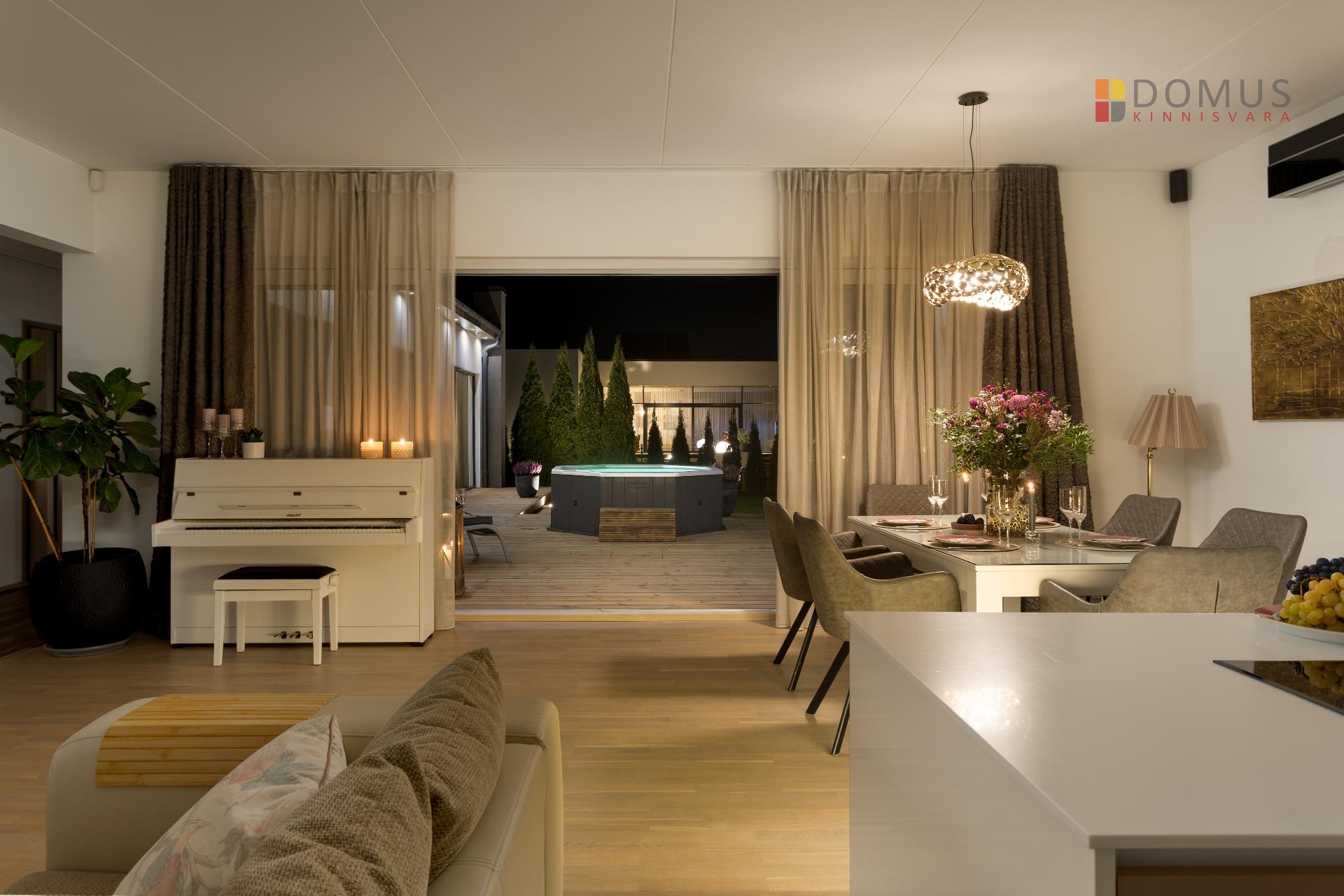 Avarust köögi ja elutoa osasse lisavad liugsüsteemiga terrassiuksed ning läbi maja planeering, mis võimaldab valgusel sisse paista mõlemalt poolt maja.