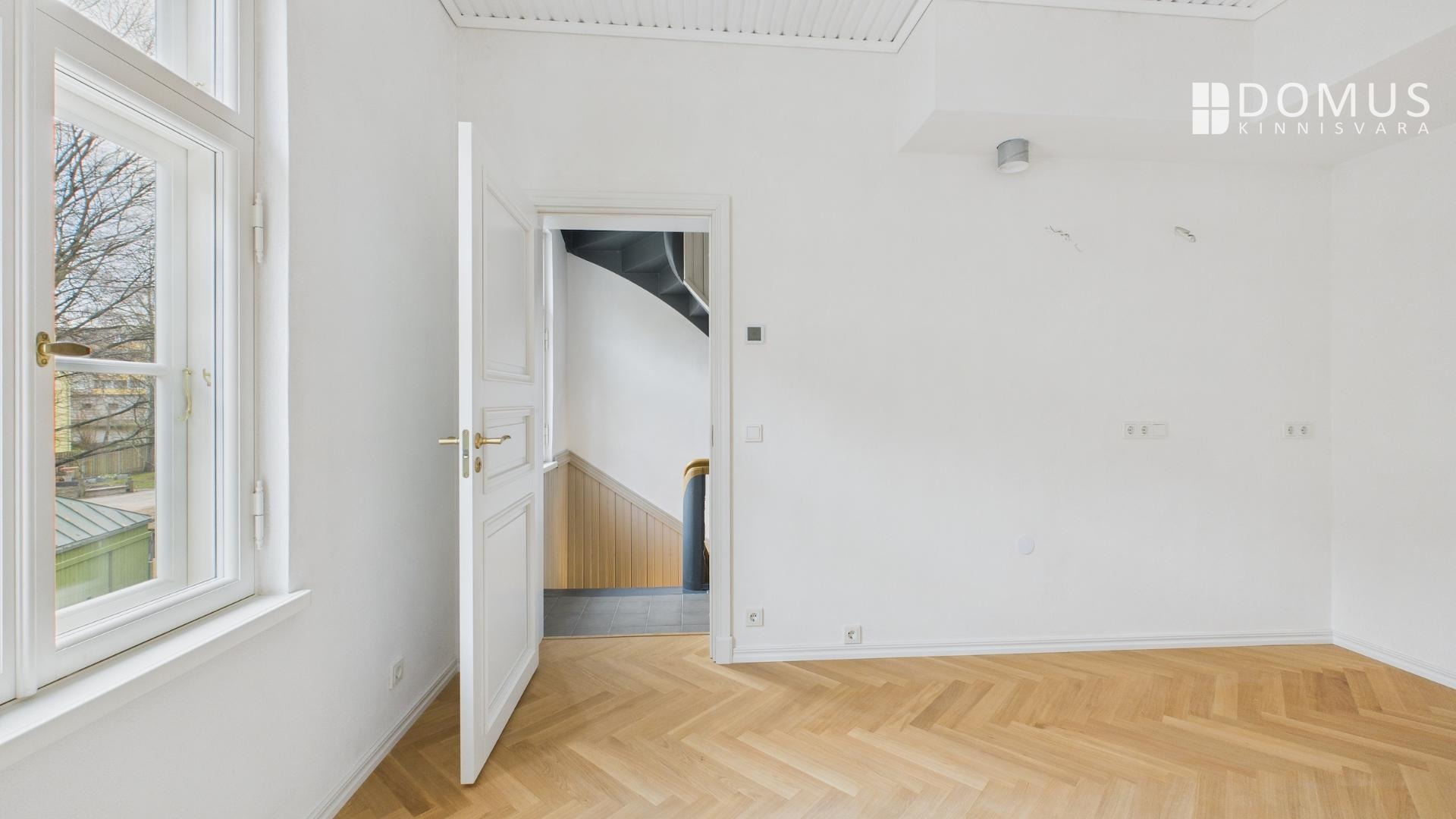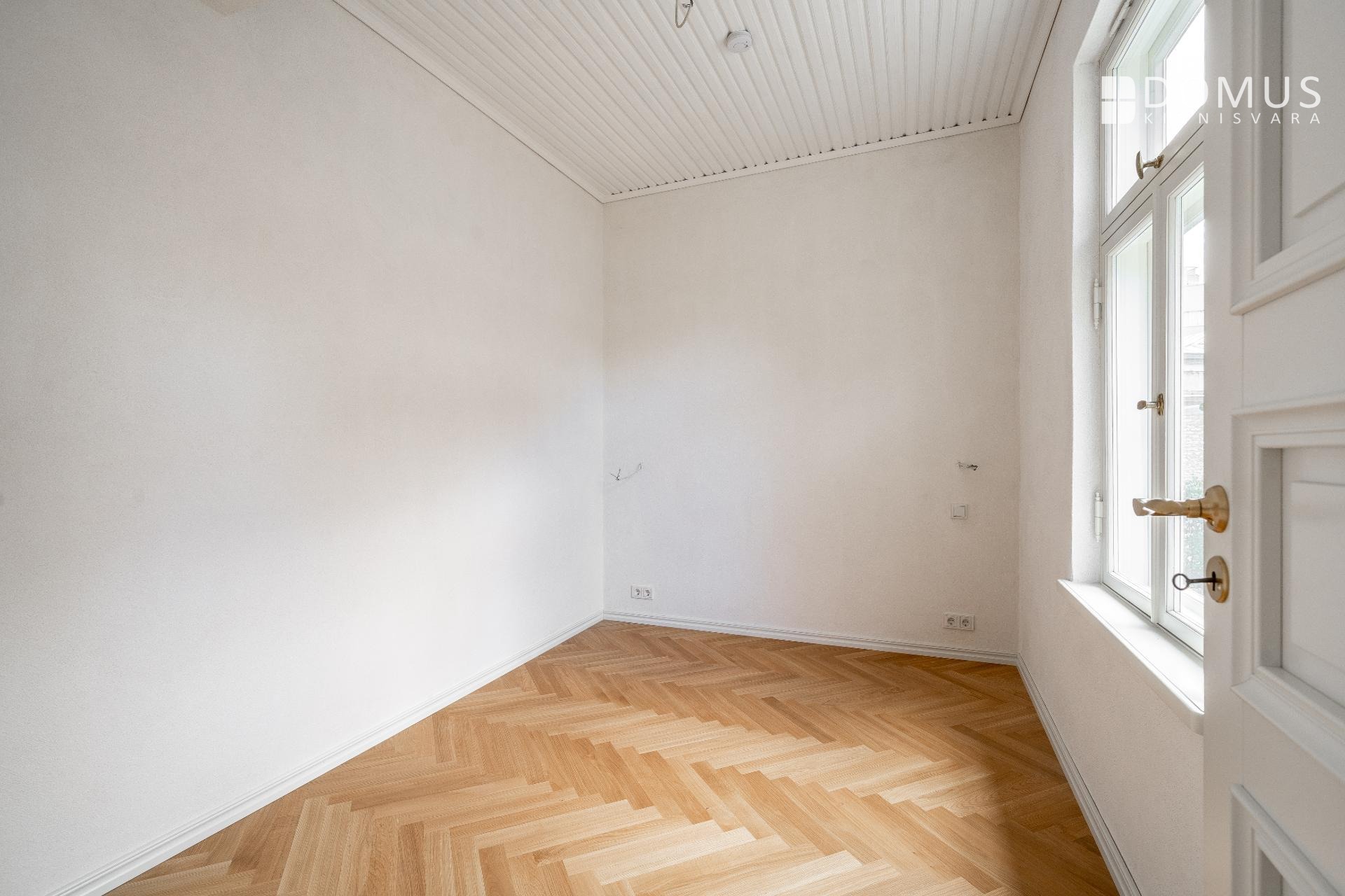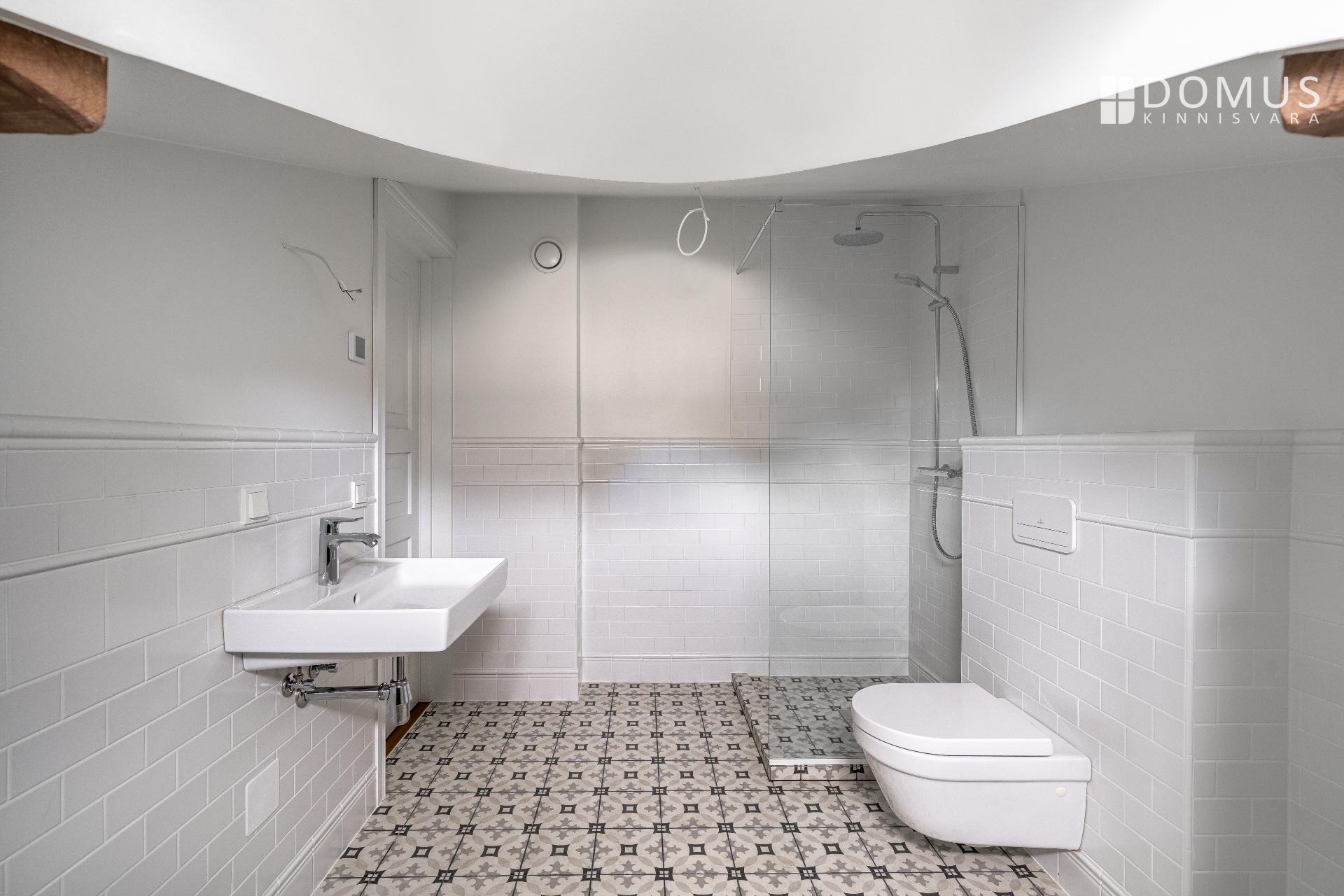 Muinsuskaitsealusele majale väärikalt rõhutasime selle ajastut kvaliteetsete materjalidega tänapäevases võtmes. Puitparkett kalasabamustris, puitlaudis esikuseintel ja elutoa laes, ehisdetailidega keraamilised plaadid vannitoas. Korteri seinu katab samuti looduslik materjal - lubikrohv, mis jätab kergelt struktuurse lõpptulemuse ja on omaette vaatamist väärt.