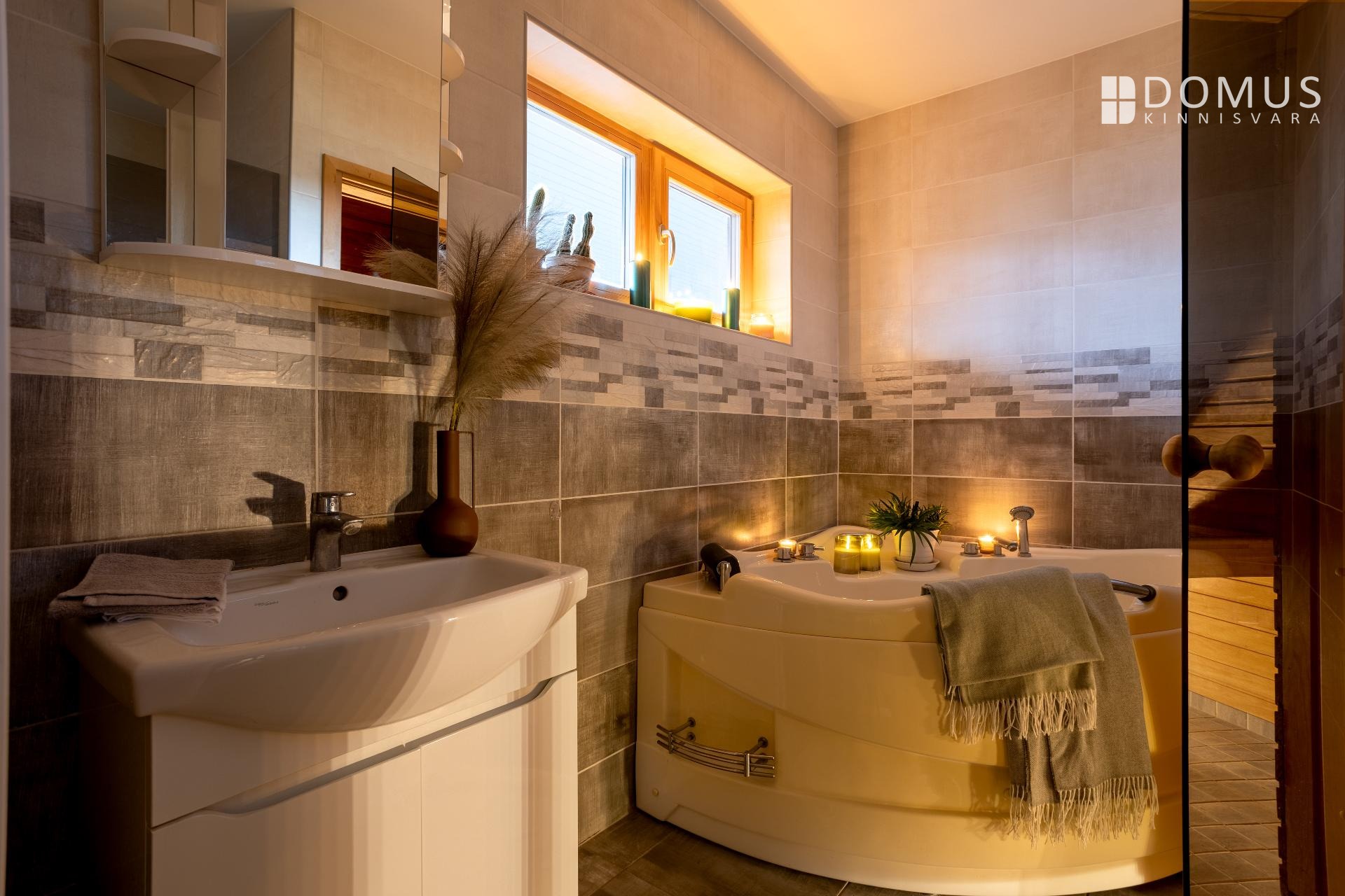 Mis seal ikka--"master bedroomist" pääseb otse vannituppa. Küta saun, lase vann täituda vahuga ja küünlad osta kohalikust Coopist... seda on eesti mehe kohta juba üle ootuste seega "10 punkti" teenitud säästueelarvega - ei peagi spaasse minema, sest Sa ise oled spaa omanik ja "mägede poeg" kes pärast väsitavat päeva oma naisele massaaži pakub. Ja usu see on palju armsam kui klassikaline spaa-pakett.