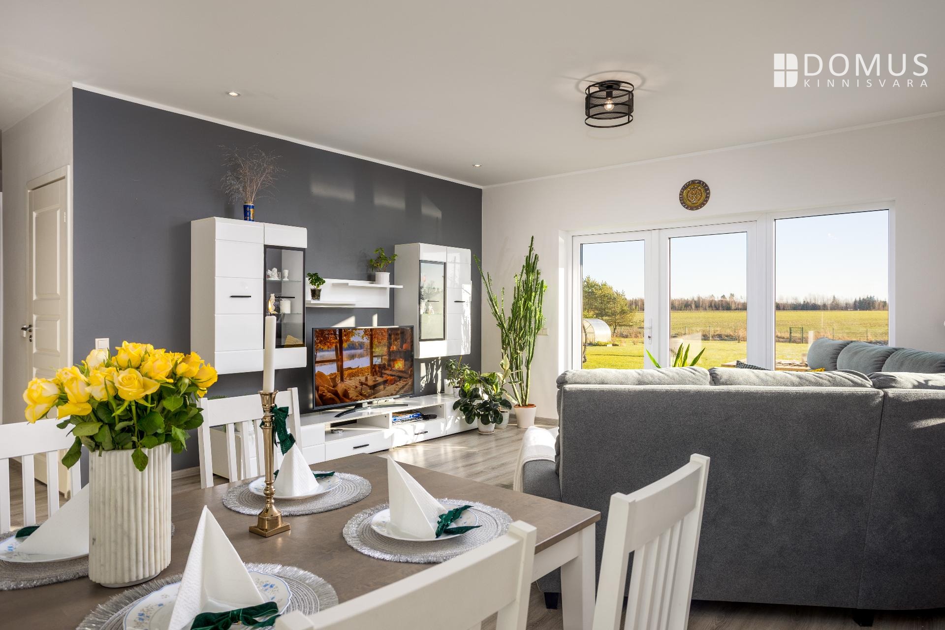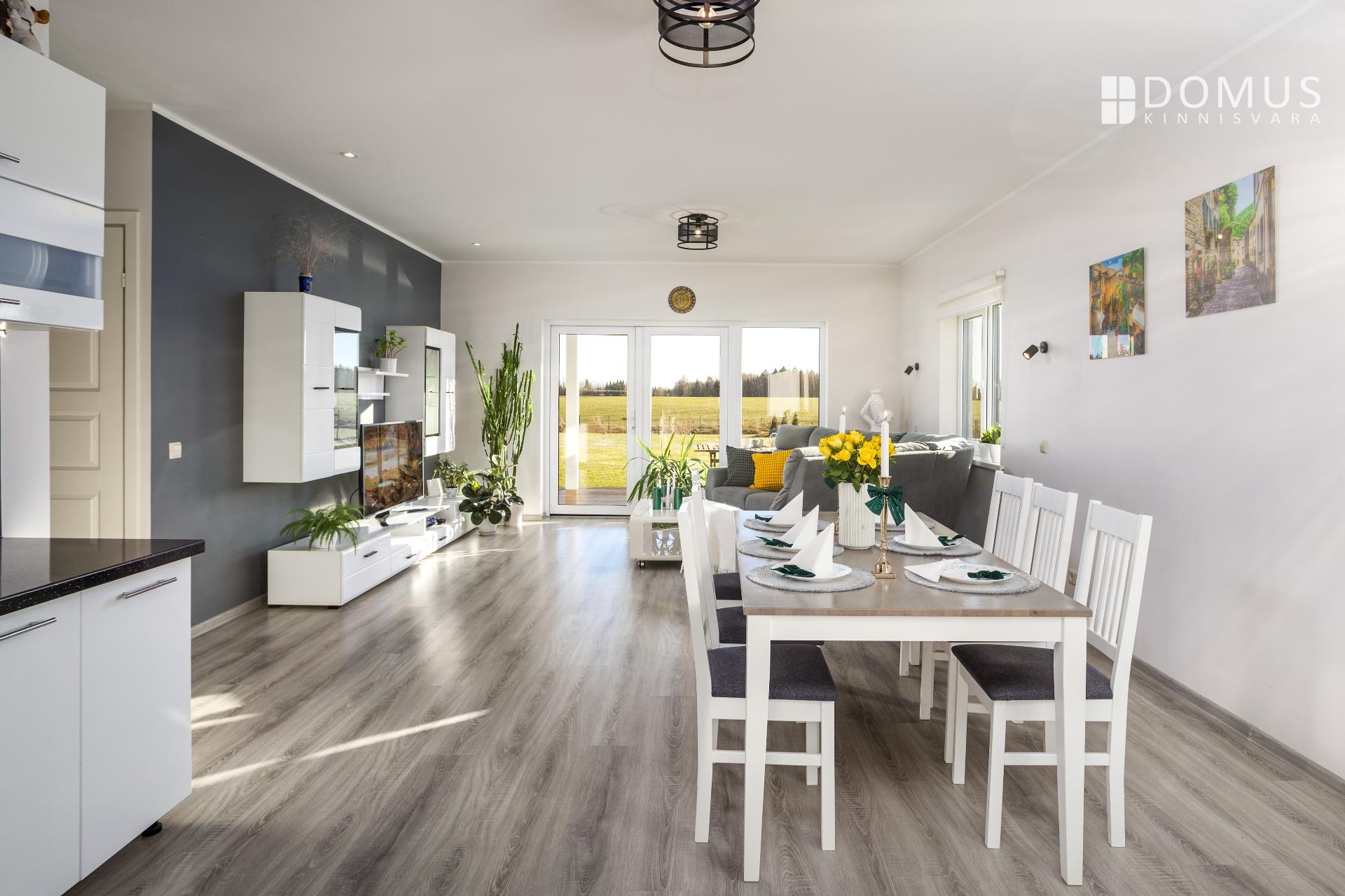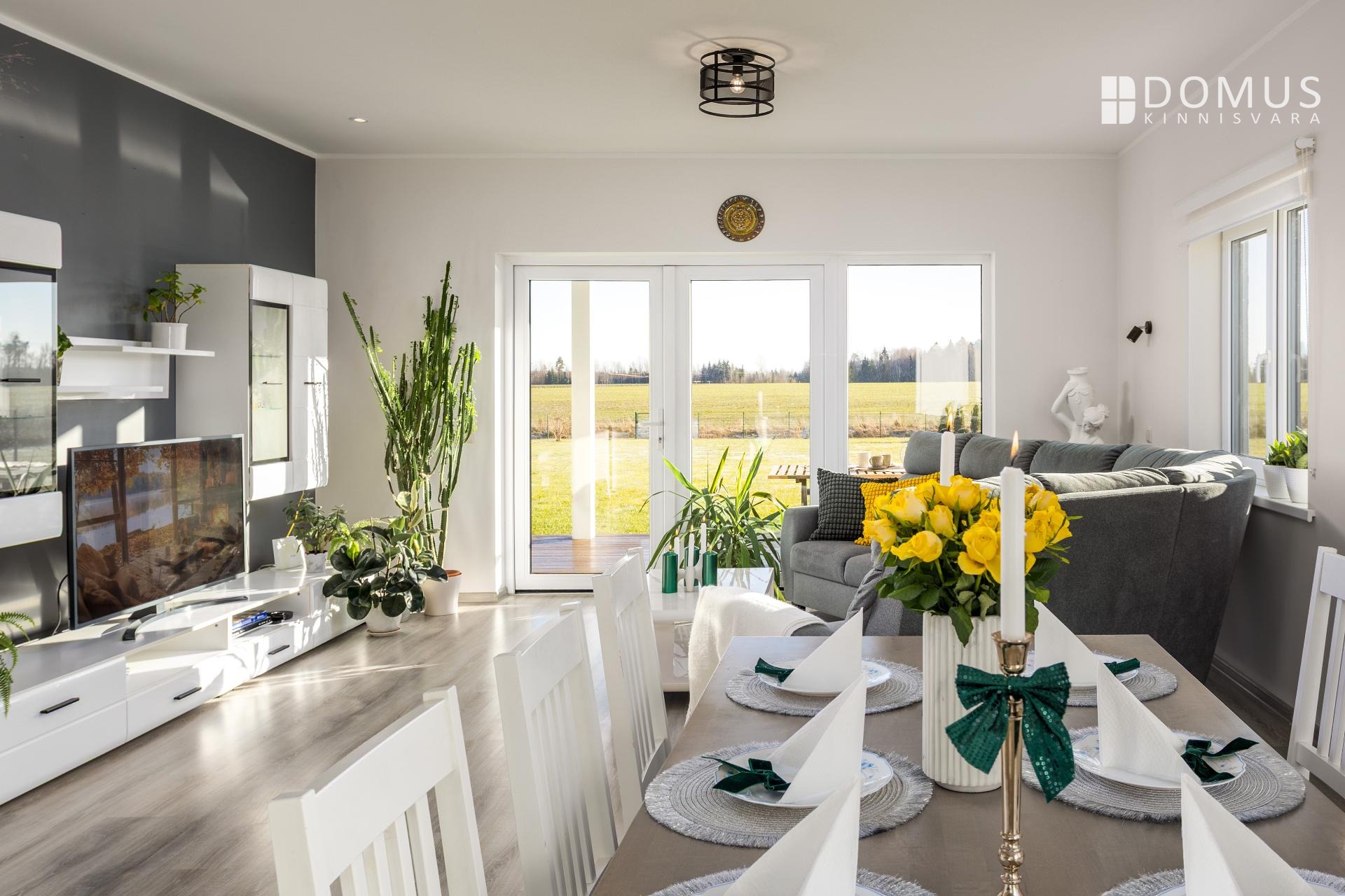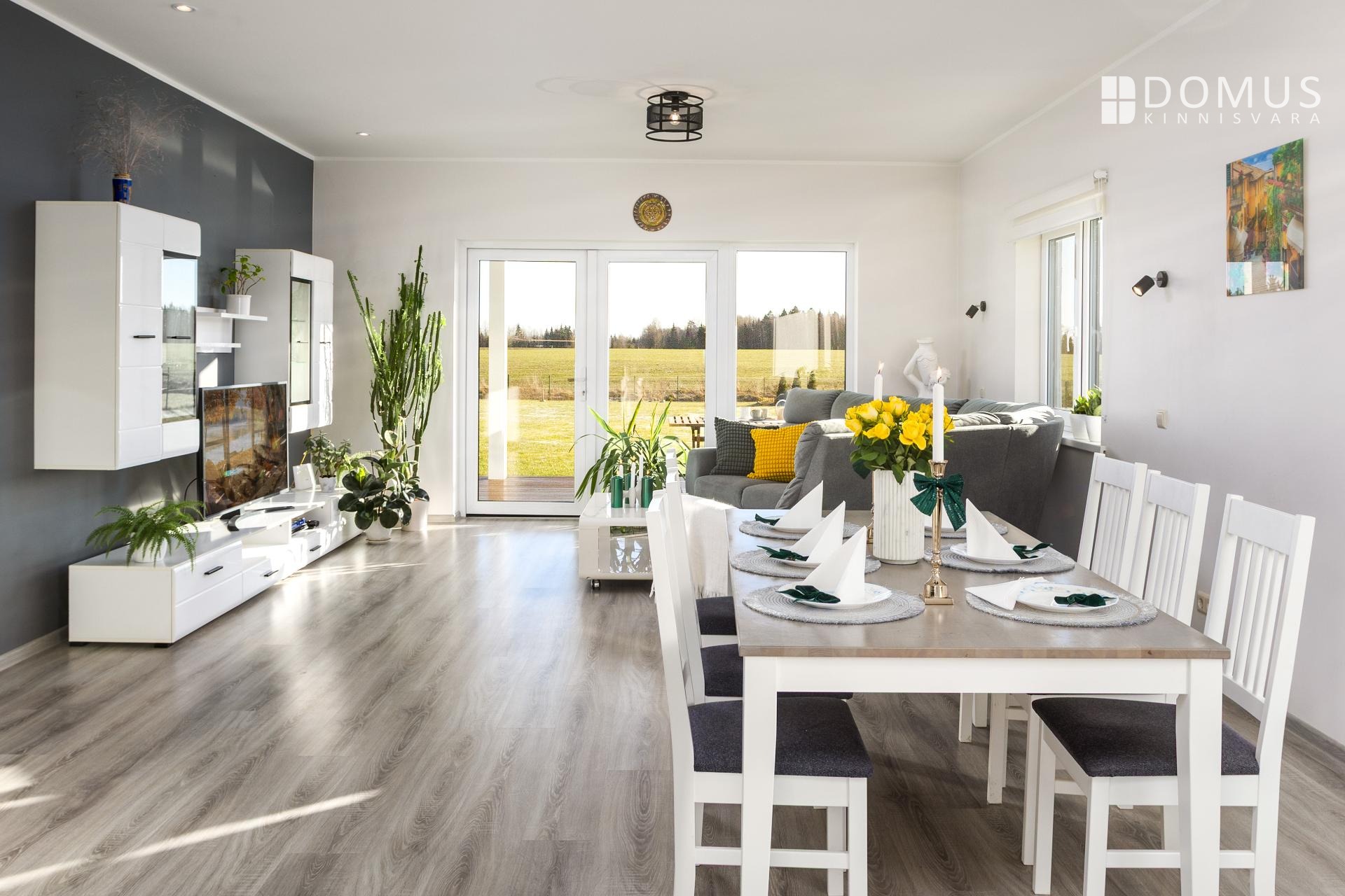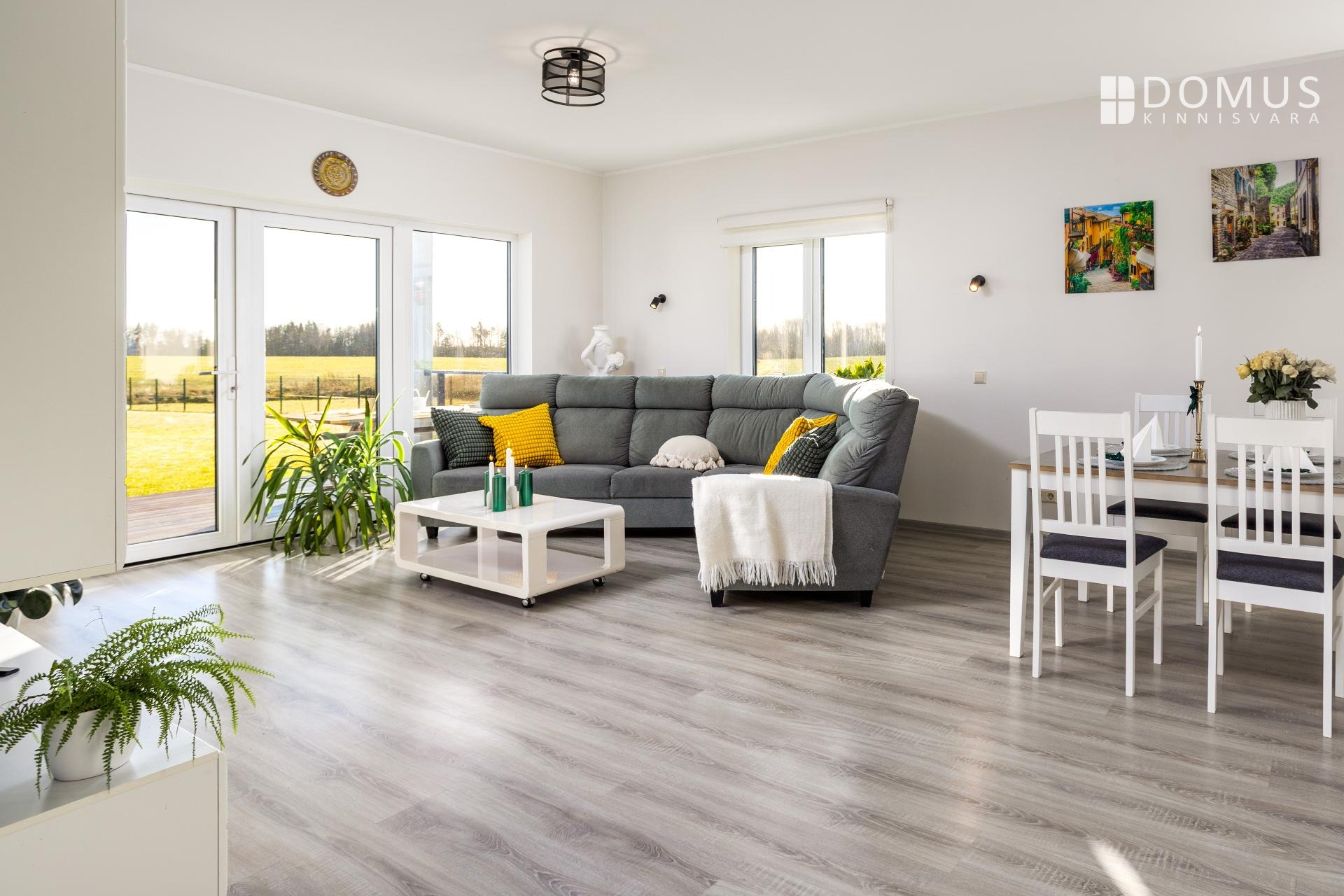 126,7 m² köetavat pinda mille soojuse tagab maasoojuspump ja 195,7 m² üldpinda kus kõik on juba olemas.