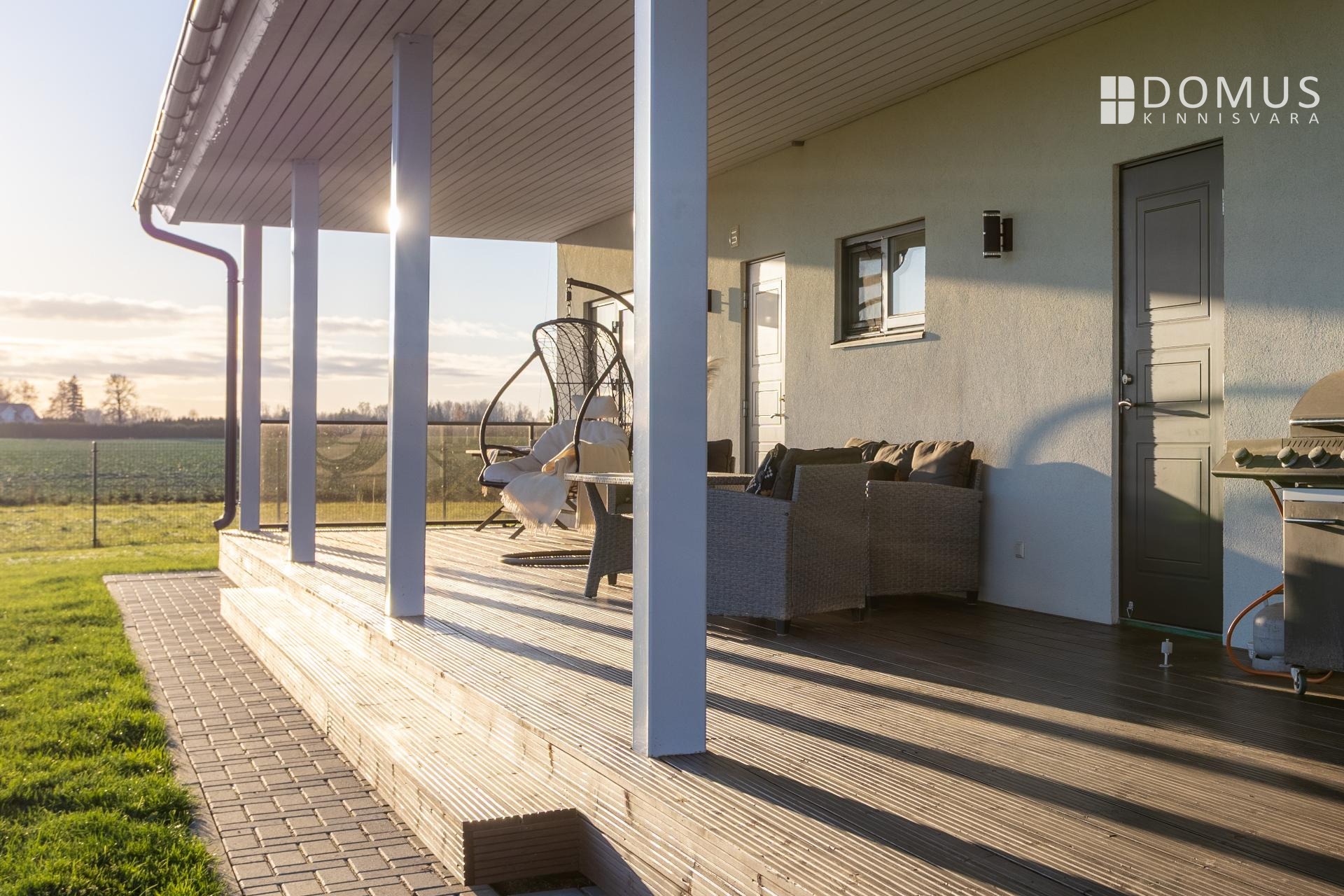 Kogu kinnistule on rajatud piirdeaed ja maja eest autost väljudes oma kaunima kontsakingaga juhatab kiviparkett sind tuppa nagu punane vaip Cannes’i festivalil
