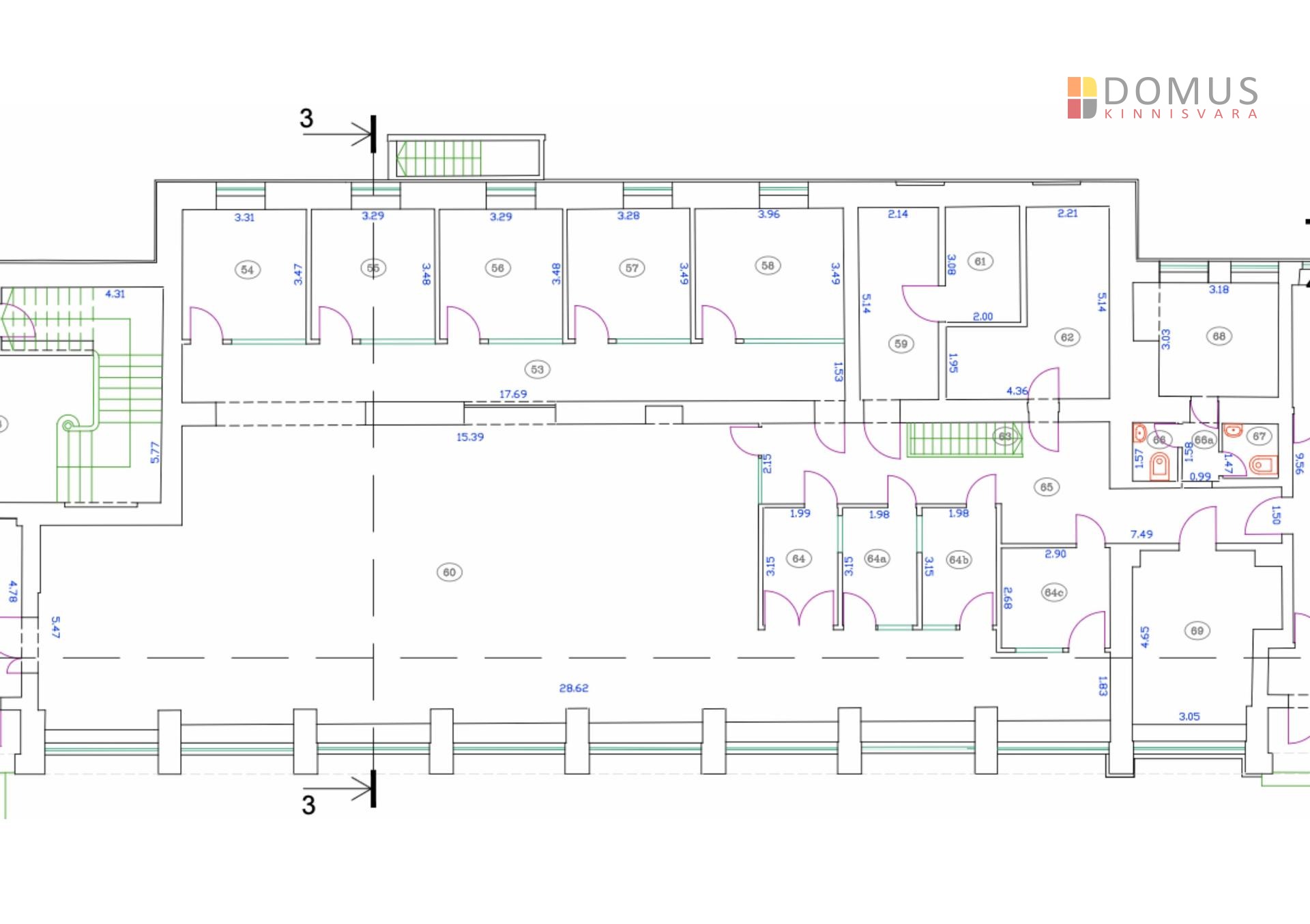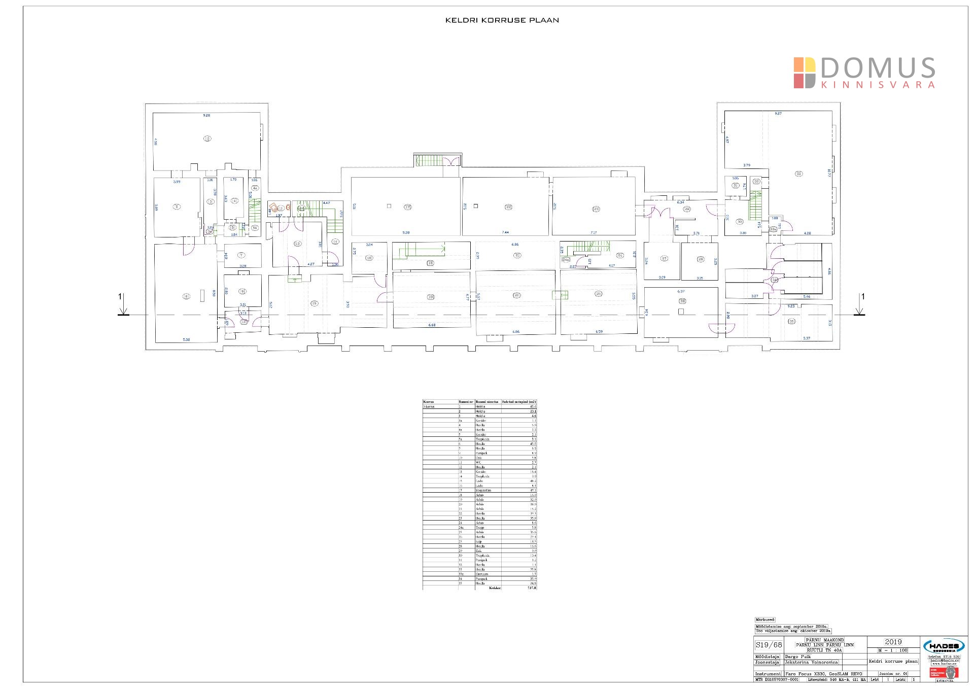 Esimesel korrusel on pinda 371 m² ja sokli korrusel 256 m², sinna pääseb nii põrandas olevate treppide avamisel läbi 1. korruse kui ajaloolise trepi kaudu läbi vasakpoolse peasissepääsu lõpus oleva sissepääsu. See annab võimaluse pindade jagamisele ja liigendamisele.