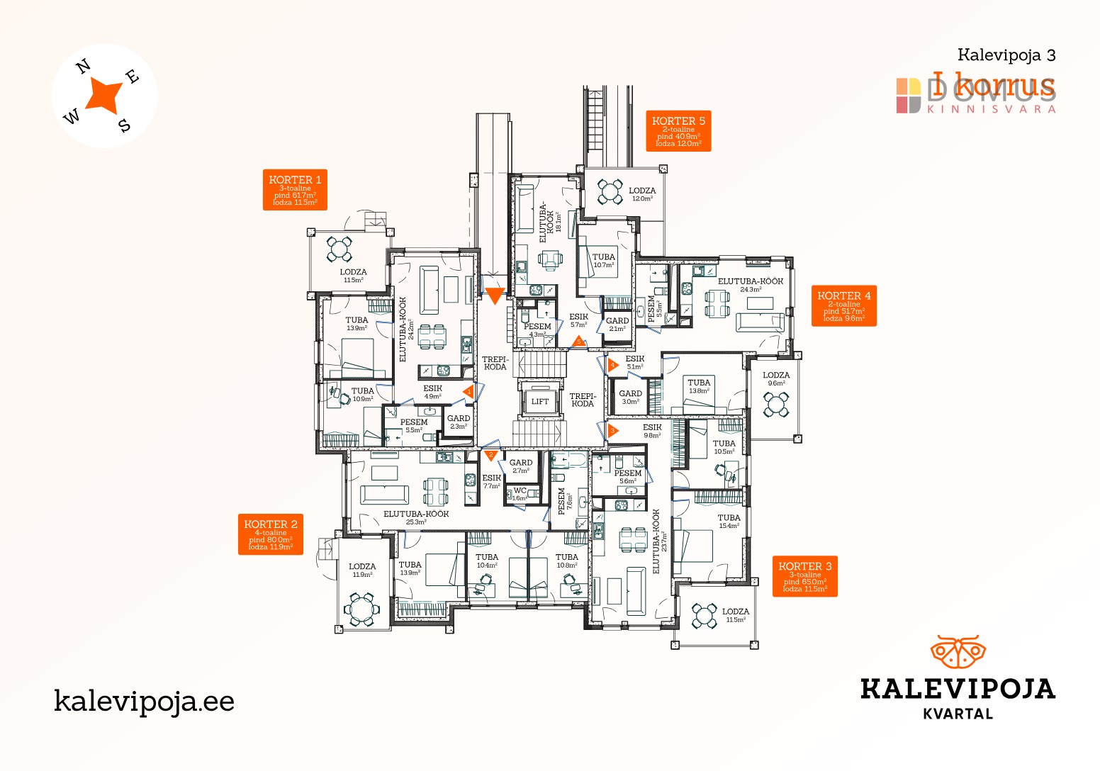 See on 3 korruseline LIFTIGA kortermaja kus kokku vaid 15 ekslusiivset 2-4 toalist korterit.