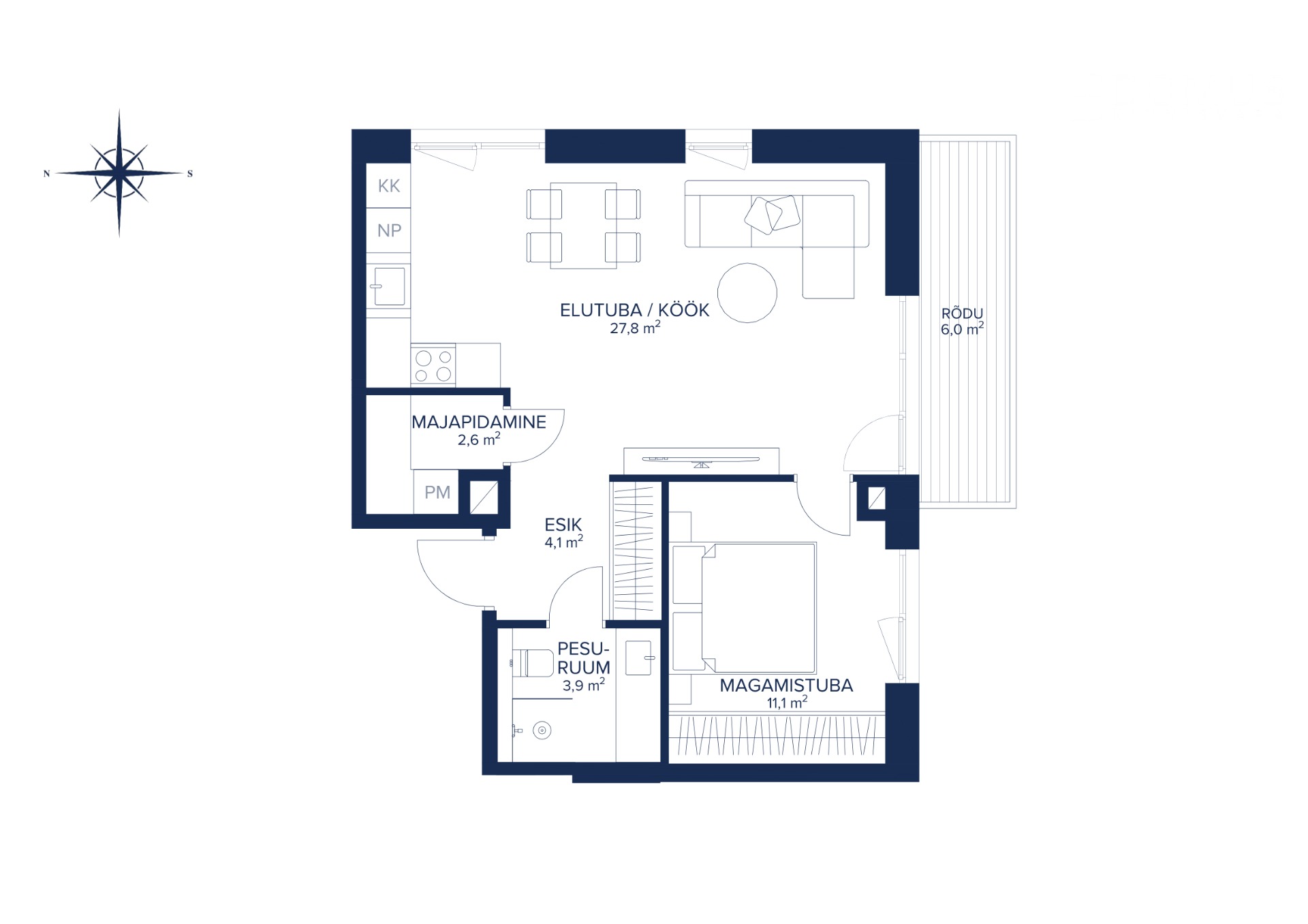 See kodu sobib suurepäraselt nii paarile, esmakoduks kui ka investeeringuks. Avatud köögiga elutuba (27,8 m²) on korteri keskne ja valgusküllane osa, kust pääseb mugavalt 6 m² suurusele rõdule – ideaalne koht hommikukohviks või õhtuseks lõõgastumiseks.