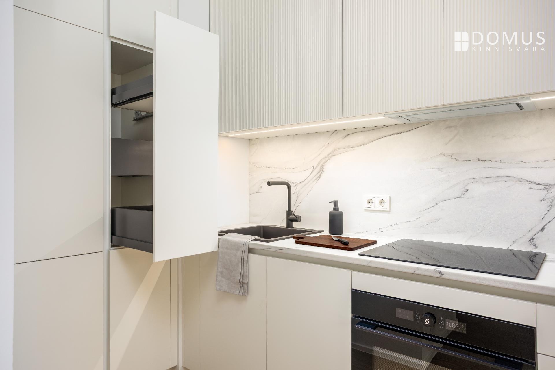 NB: Kuulutuse fotodel nähtav köök on korteris reaalselt olemas, kuid muu sisustus on ruumide kasutusvõimaluste illustreerimiseks virtuaalselt lisatud.