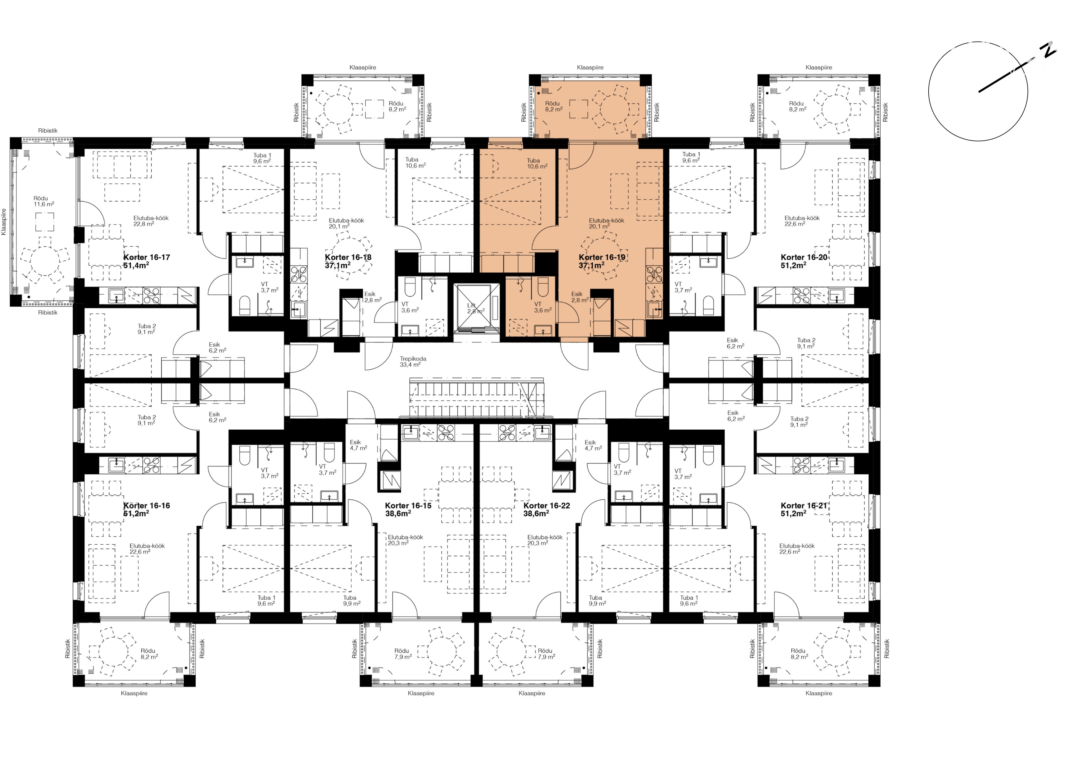 Saadaval on 2- ja 3-toalised korterid, suuruses 37,1–51,8 m².