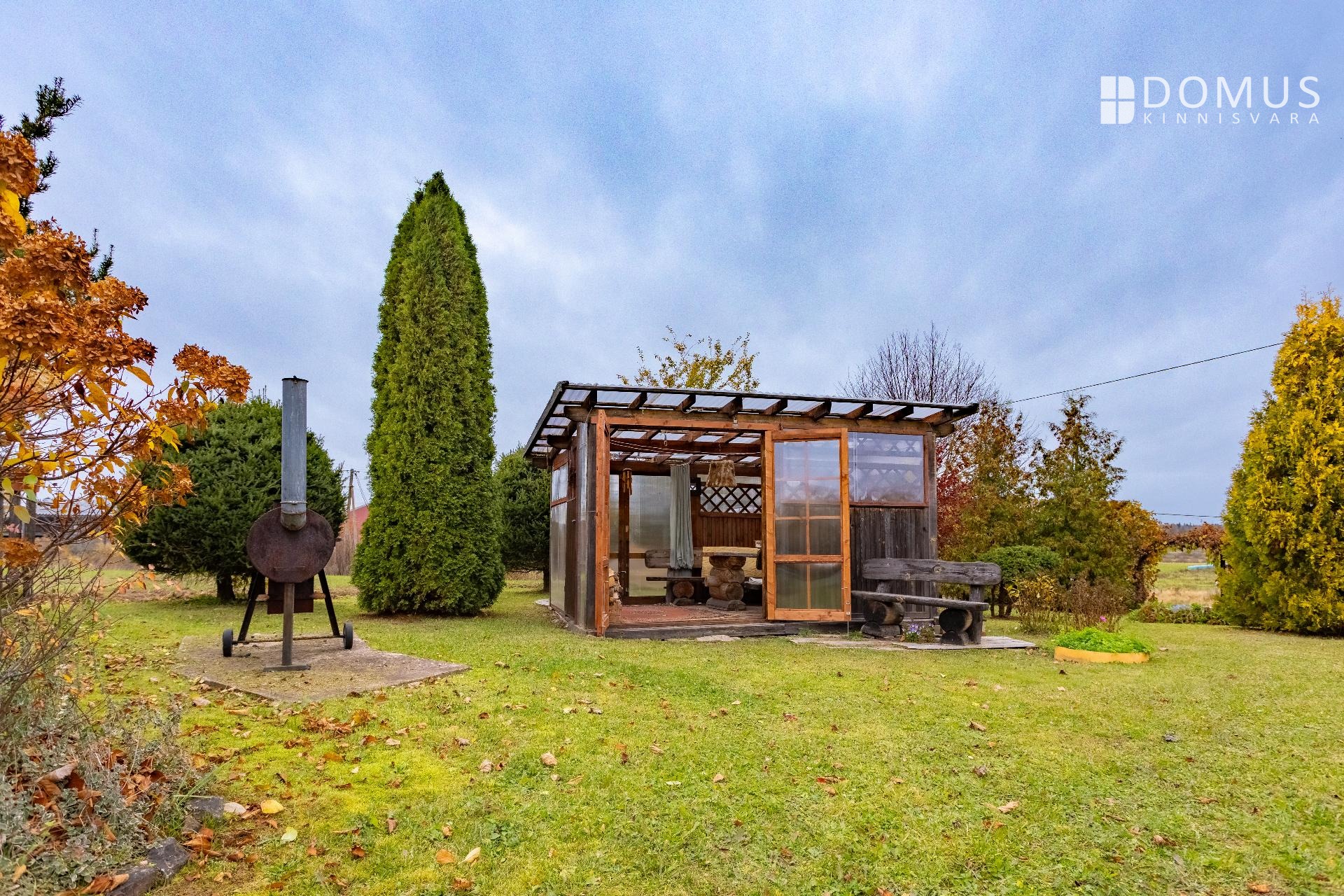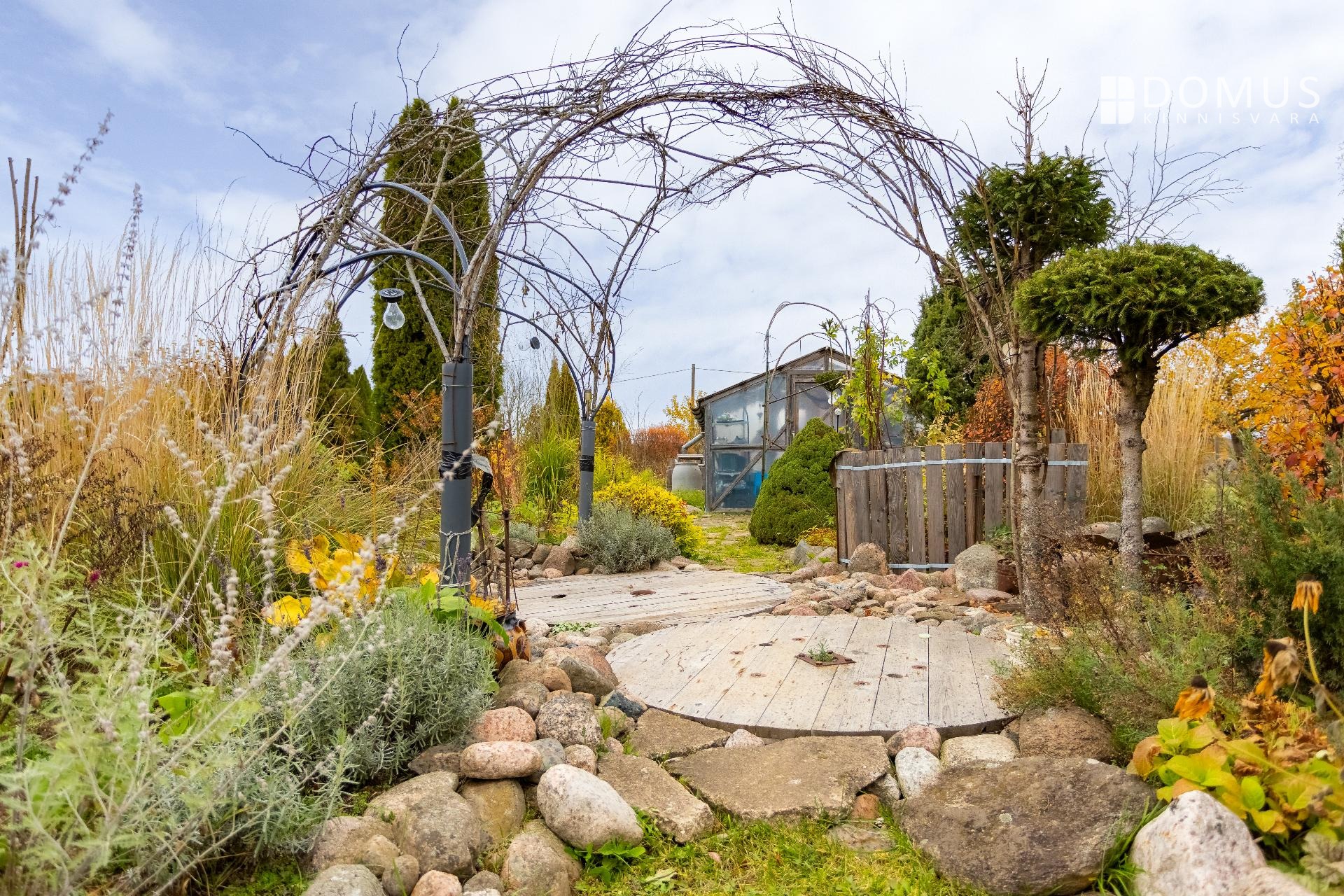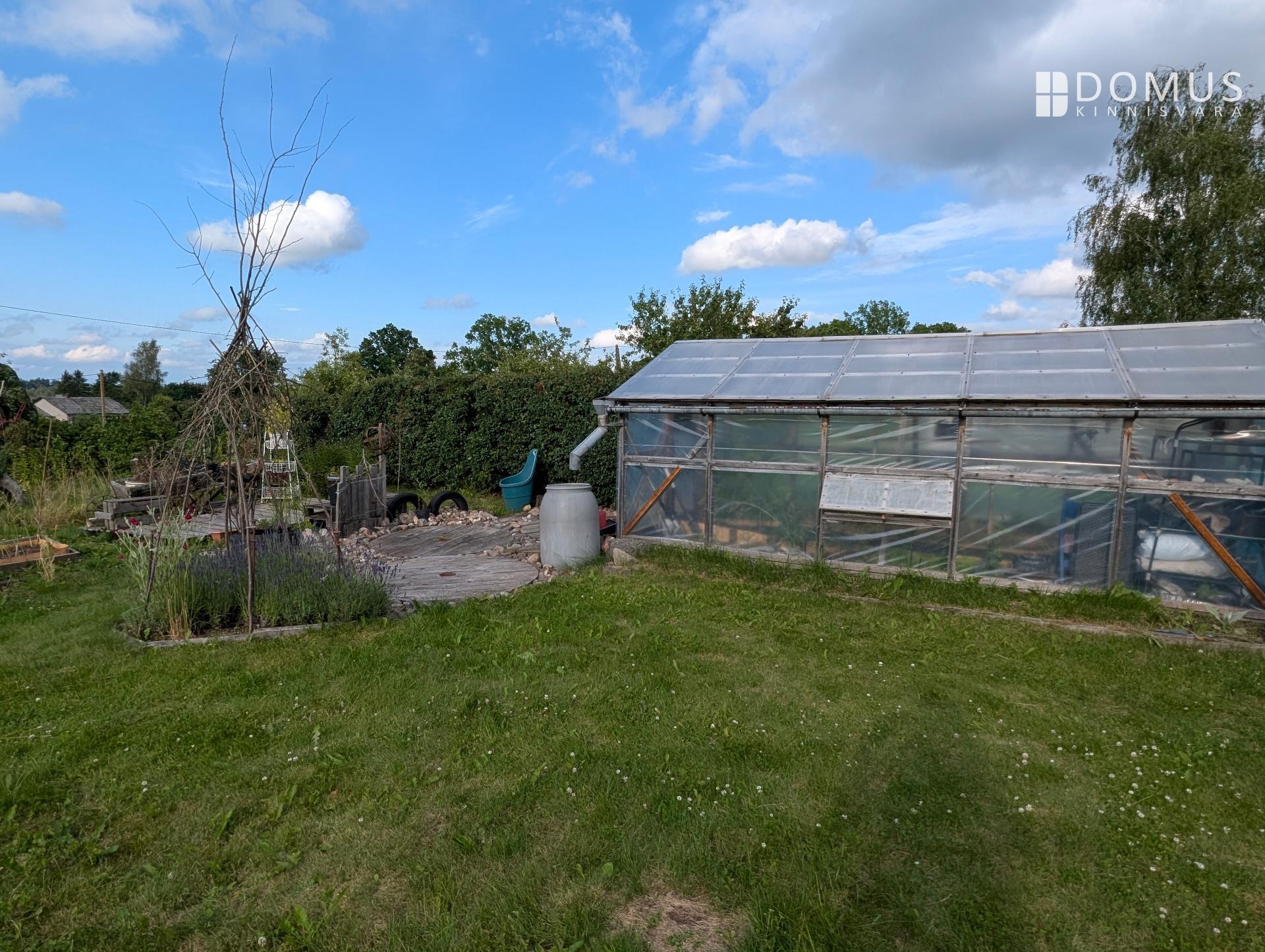 Ridaelamu juurde kuulub umbes 1100 m² suurune aiaosa, mis pakub palju privaatsust ja võimalusi aianduseks. Aias kasvab mitmeid viljapuid, ilupõõsaid ja erinevaid taimi. Aias on ka hubane grillmajake, ideaalne koht pere ja sõpradega aja veetmiseks, mahukas puukuur ja kasvuhoone.