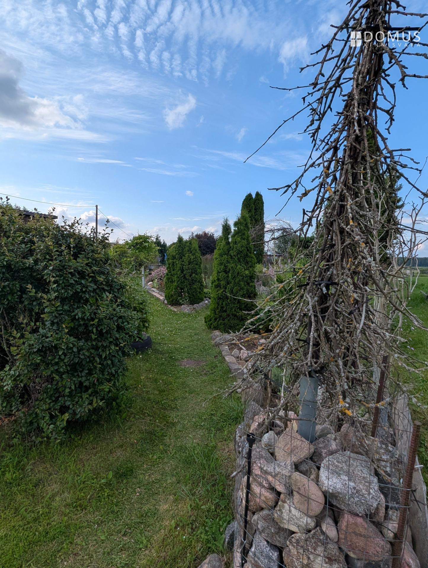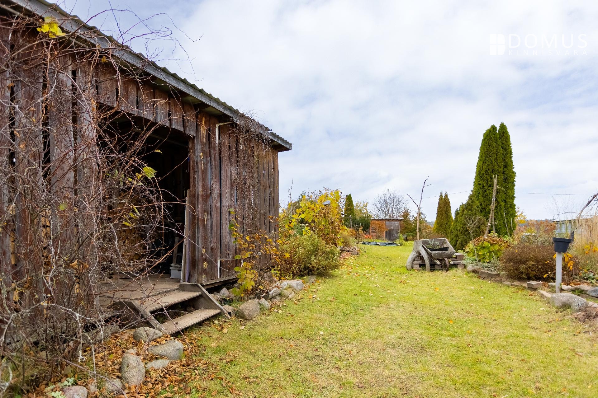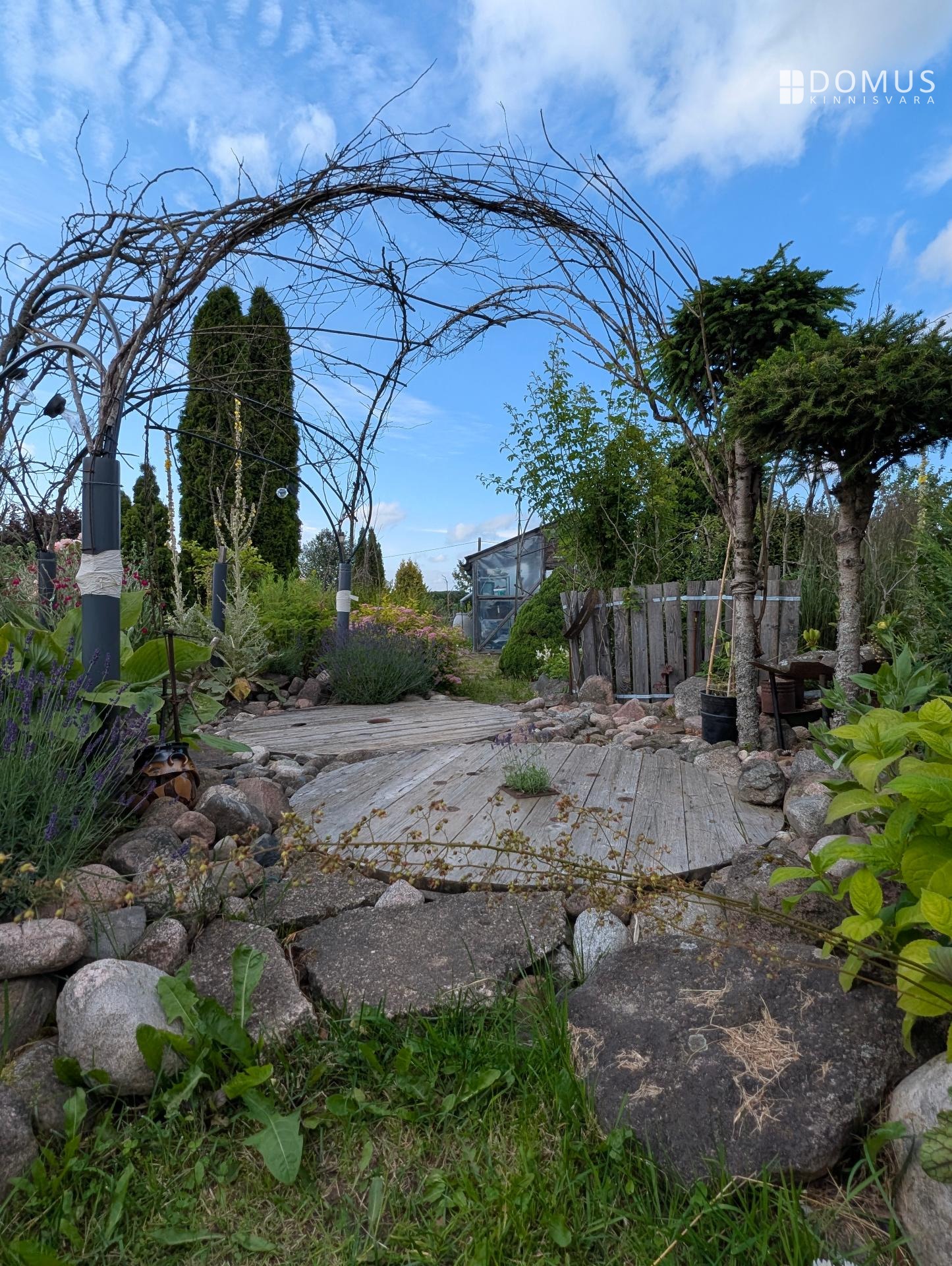 Ridaelamu juurde kuulub umbes 1100 m² suurune aiaosa, mis pakub palju privaatsust ja võimalusi aianduseks. Aias kasvab mitmeid viljapuid, ilupõõsaid ja erinevaid taimi. Aias on ka hubane grillmajake, ideaalne koht pere ja sõpradega aja veetmiseks, mahukas puukuur ja kasvuhoone.