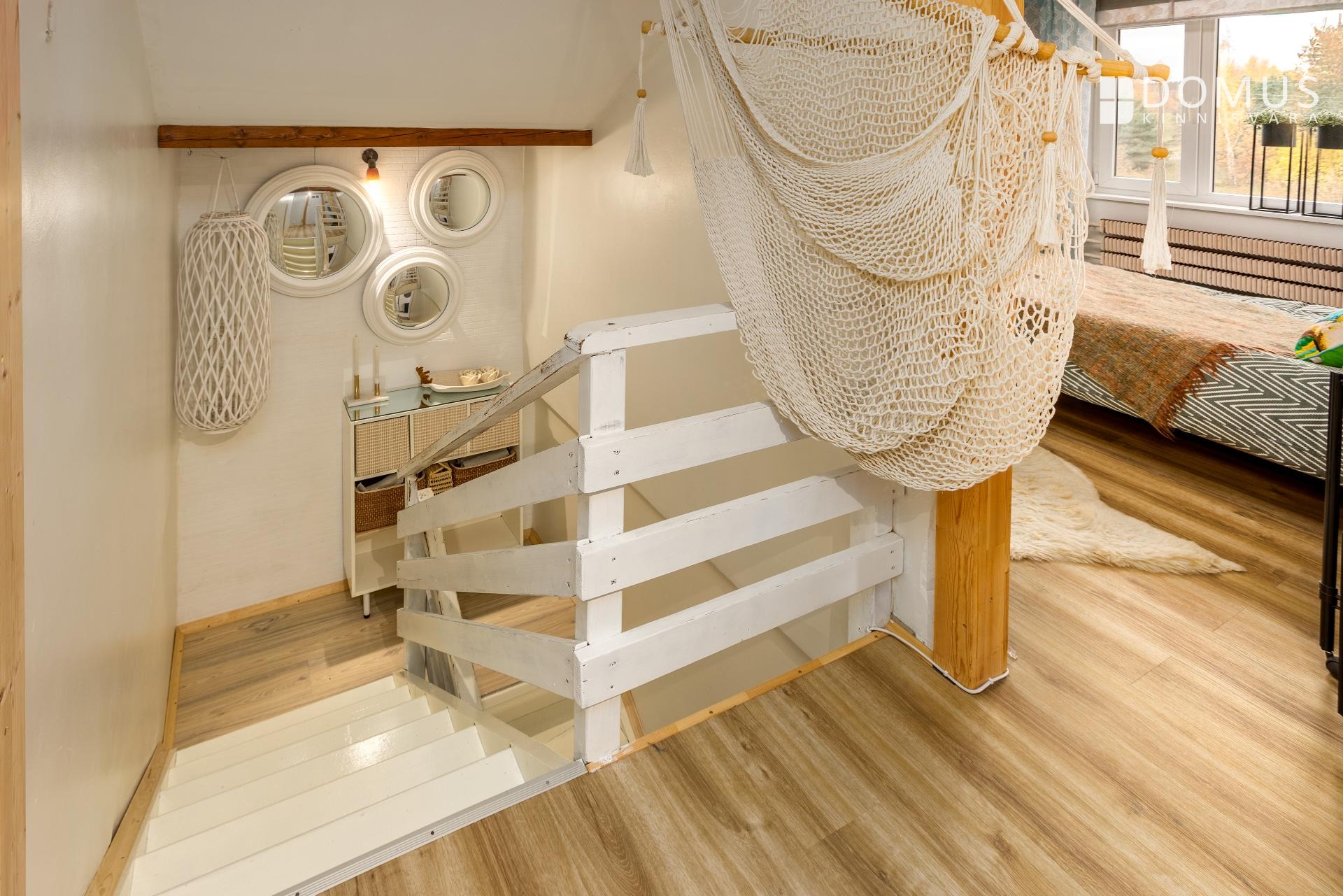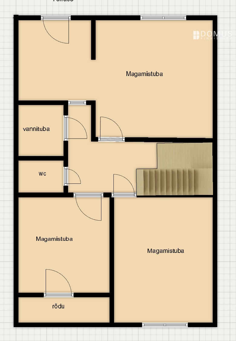 Elutoast pääs aeda. Teisel korrusel kolm magamistub, teine WC ja eraldi vannituba. Ühest magamistoast pääseb maja ette jäävale rõdule. Teises toas on nutikalt lahendatud ka töötoa nurk, mis sobib hästi kodukontoriks.