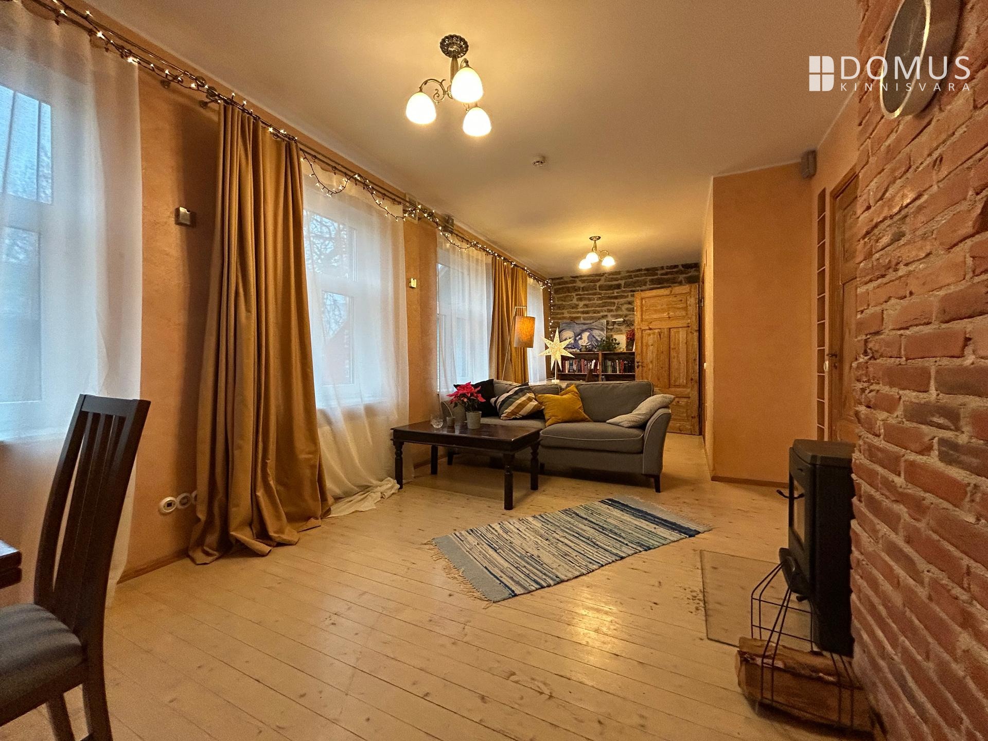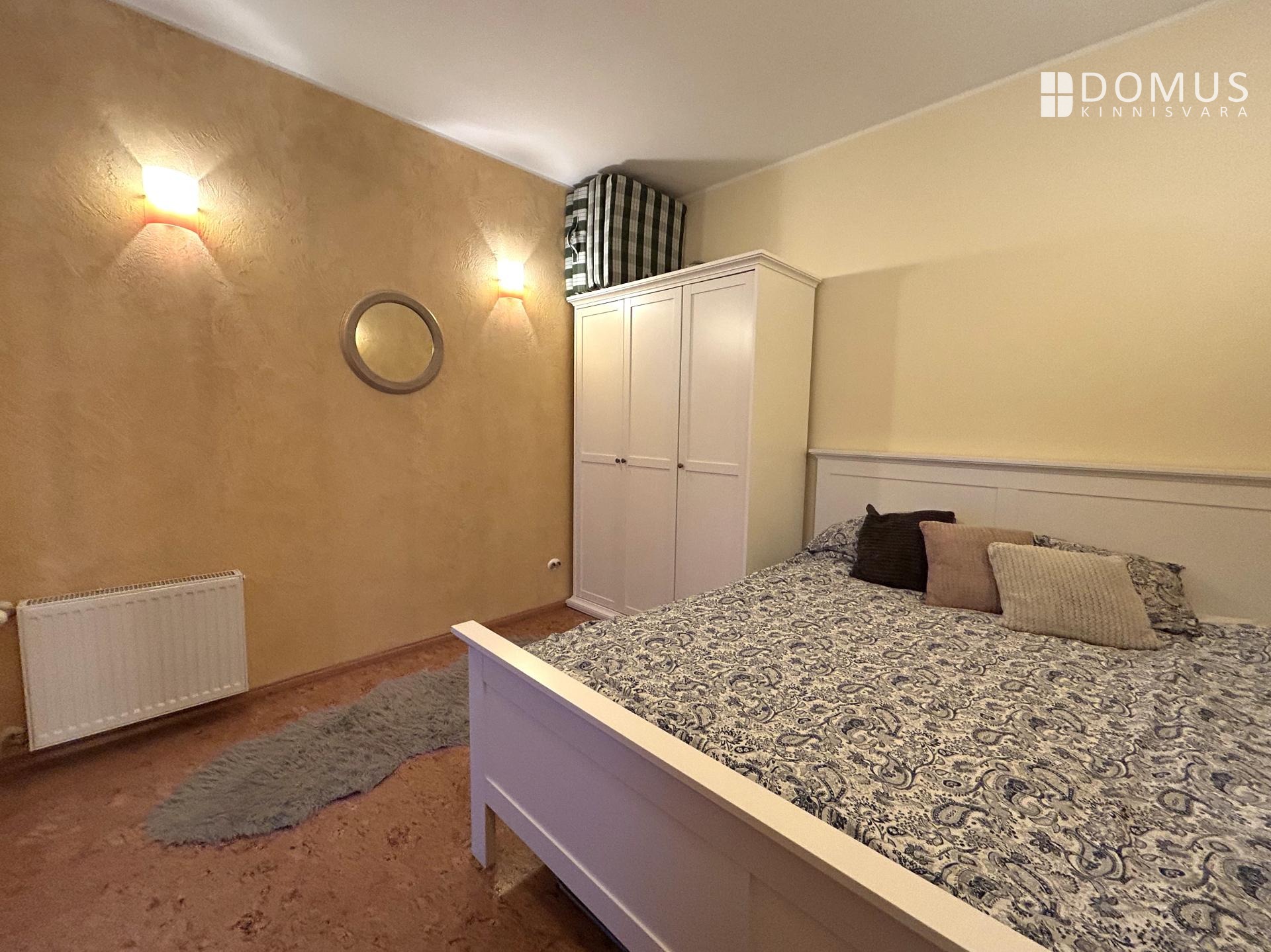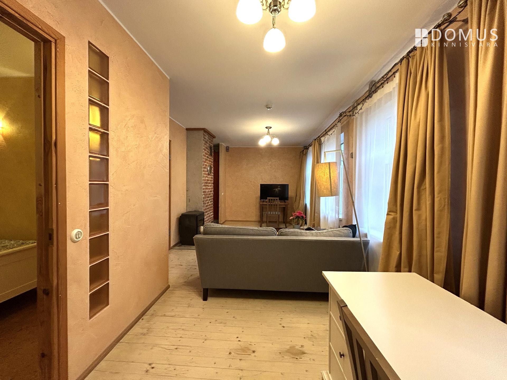 Asub kahekorruselise puitmaja teisel korrusel. Elupind on hästi läbimõeldud ja mugava planeeringuga – avar elutuba osaliselt eraldatud köögiga, eraldi magamistuba garderoobikapiga ja möbleeritud wc/vannituba koos pesumasinaga. Köögis on köögimööbel tehnikaga (induktsioonpliit, ahi, külmik, sügavkülmkapp). Aknad avanevad sisehoovi.