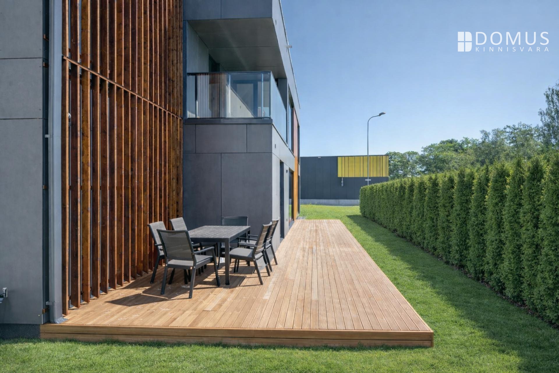Elutuba avaneb terrassile, mis muutub kevadel privaatsemaks ja haljastus rohelisemaks – terrassi äärde istutatakse lisaks kõrged elupuud, mis loovad rohelisema vaate ja eraldatud nurgakese.