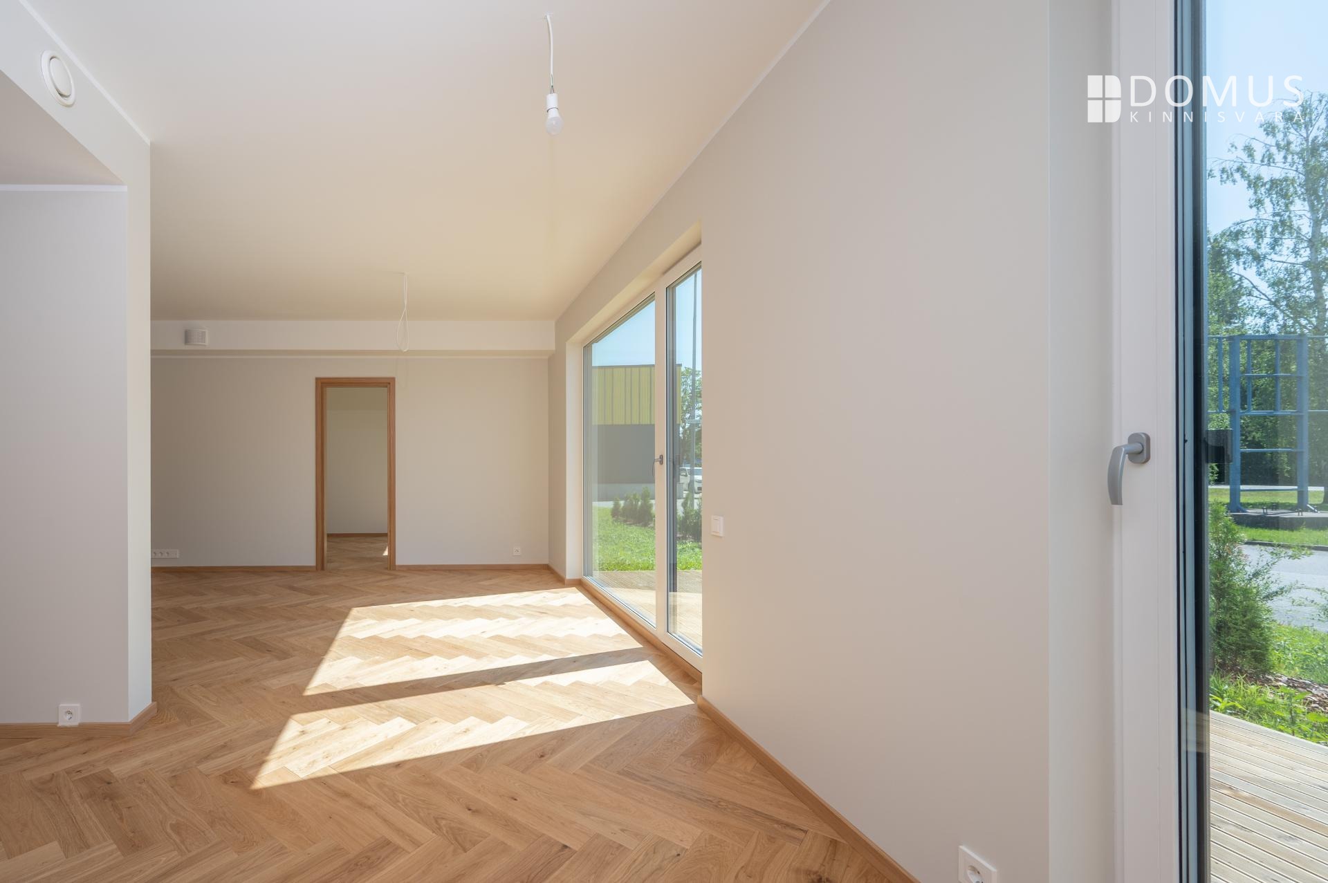 Magamistubade aknad jäävad maja vaiksemasse külge, kus ei ole liiklust ega kõnniteid. Korteris elades vastasnaabrit seina taga ei ole ja ainukene otsene naaber on ülemisel korrusel. Korteris on kokku 3 magamistuba, 2 vannituba/tualetti, avar köök-elutuba, kus pääseb õue terrassile ning eraldi on koridoris soe panipaik.