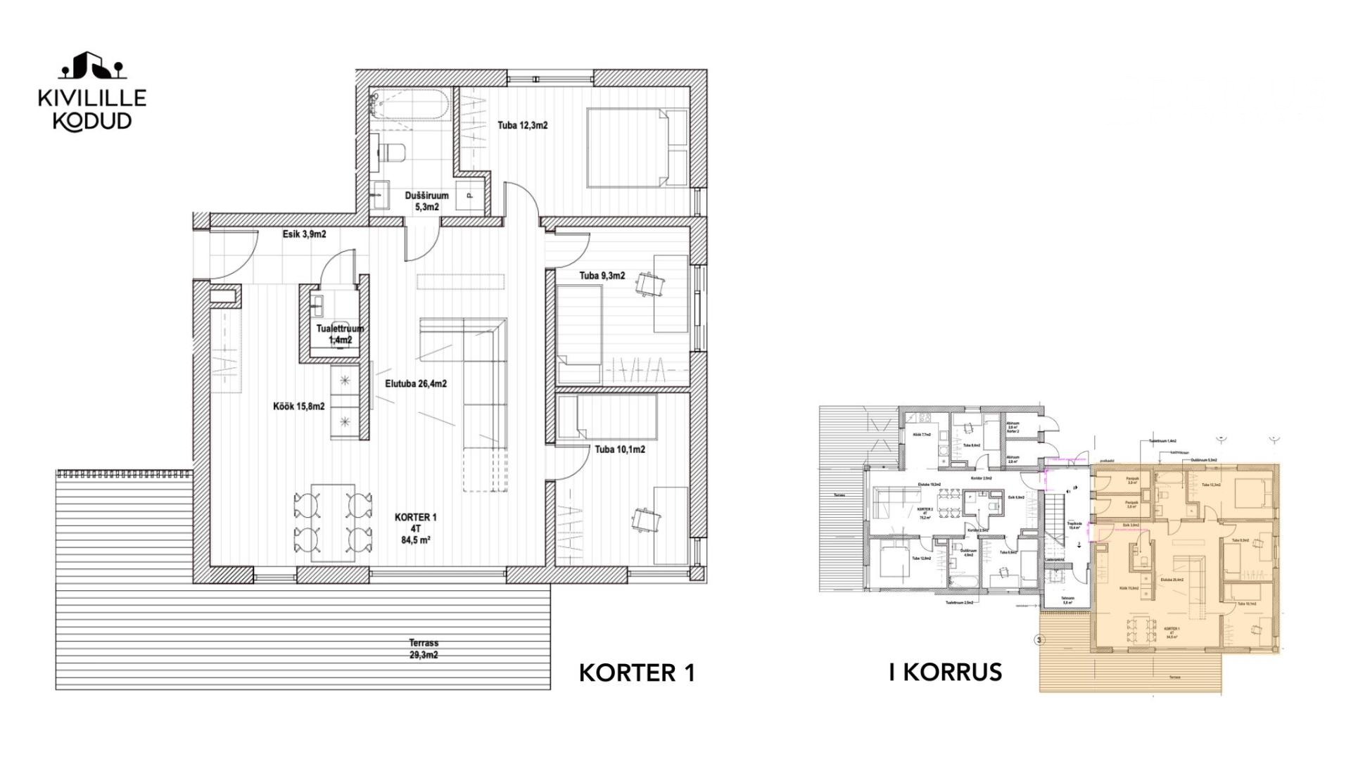 Kivilille Kodude arenduses on müügil haruldane 4-toaline avar kodu koos suure terrassiga.