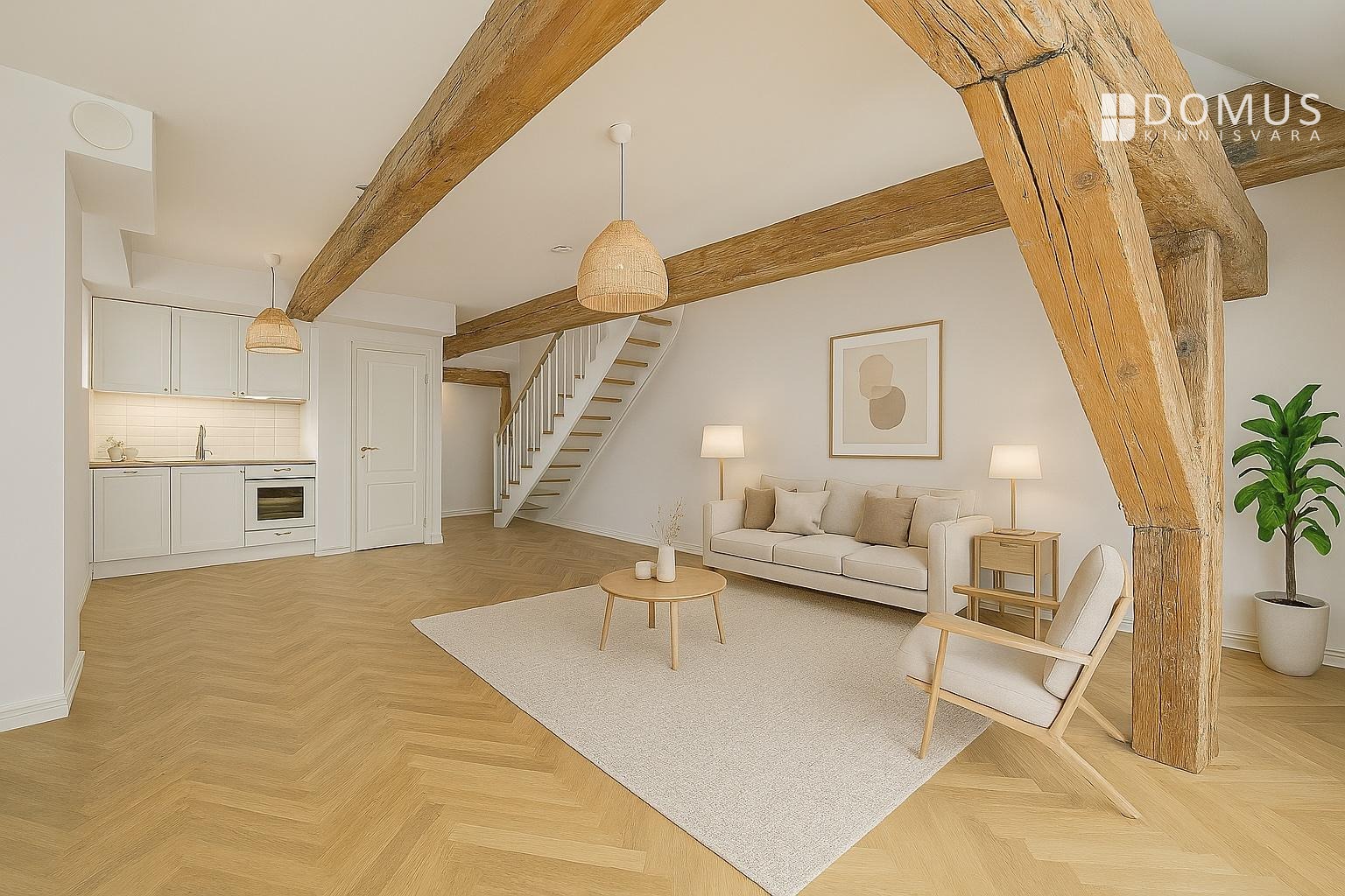 Müüdav korter on 2-toaline, pind on 77,5 m² mis on 1,6 m kõrguselt mõõdetuna, 92,4 m² on 1 m kõrguselt mõõdetud, põrandapinda on lausa 101,2 m². Korter asub läbi kahe korruse (III-IV), Elutoa katuseaknad avanevad lõuna poole prantsuse rõduna.