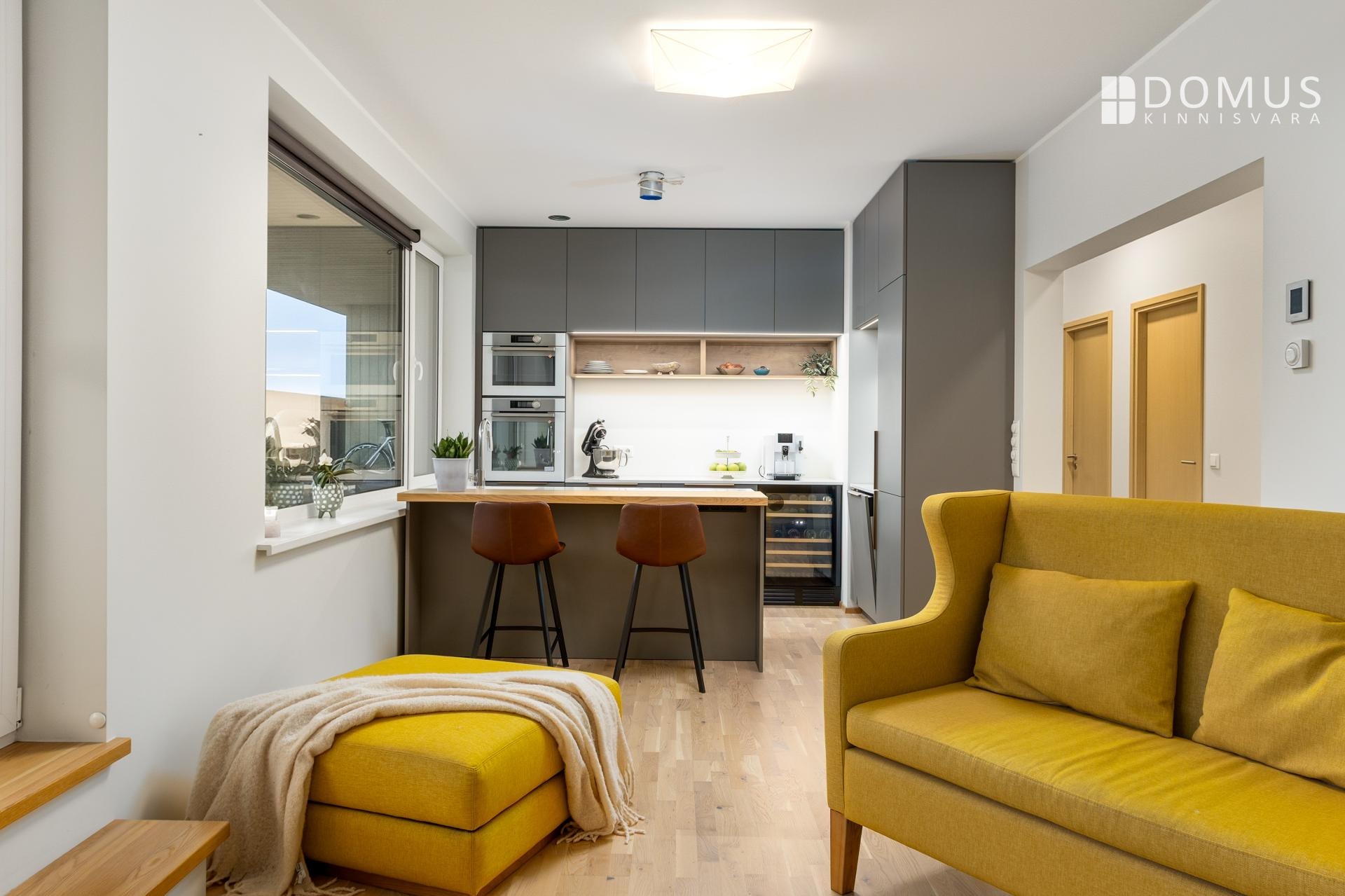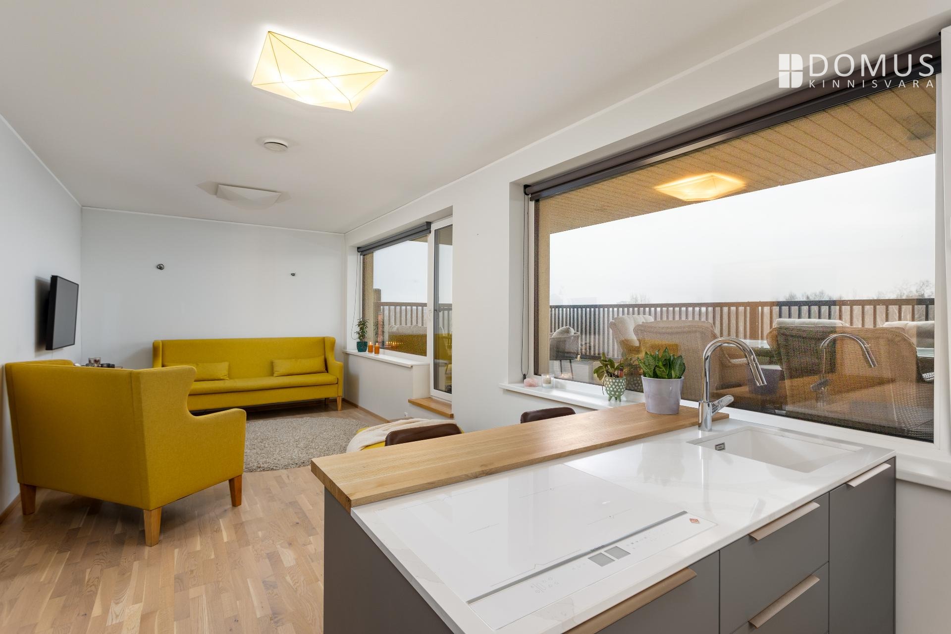 Unikaalne nn katusekorter avaneb vaadetega elutoast-köögist ning vannitoast-saunast Emajõe poole.