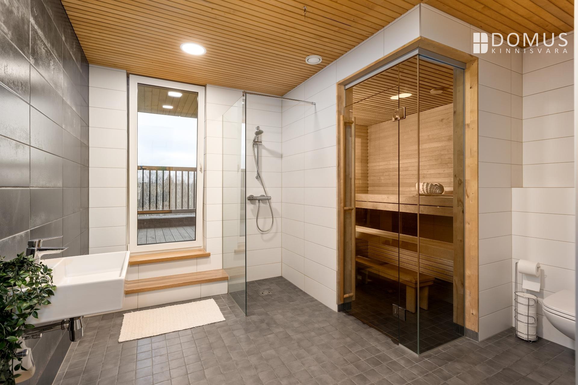 Koos päeva päikeseringiga võimaldab väärikalt suur katuseterrass kasutada vähemalt pool aastat pinda suvetoana ning saunaruumi pikendusena.