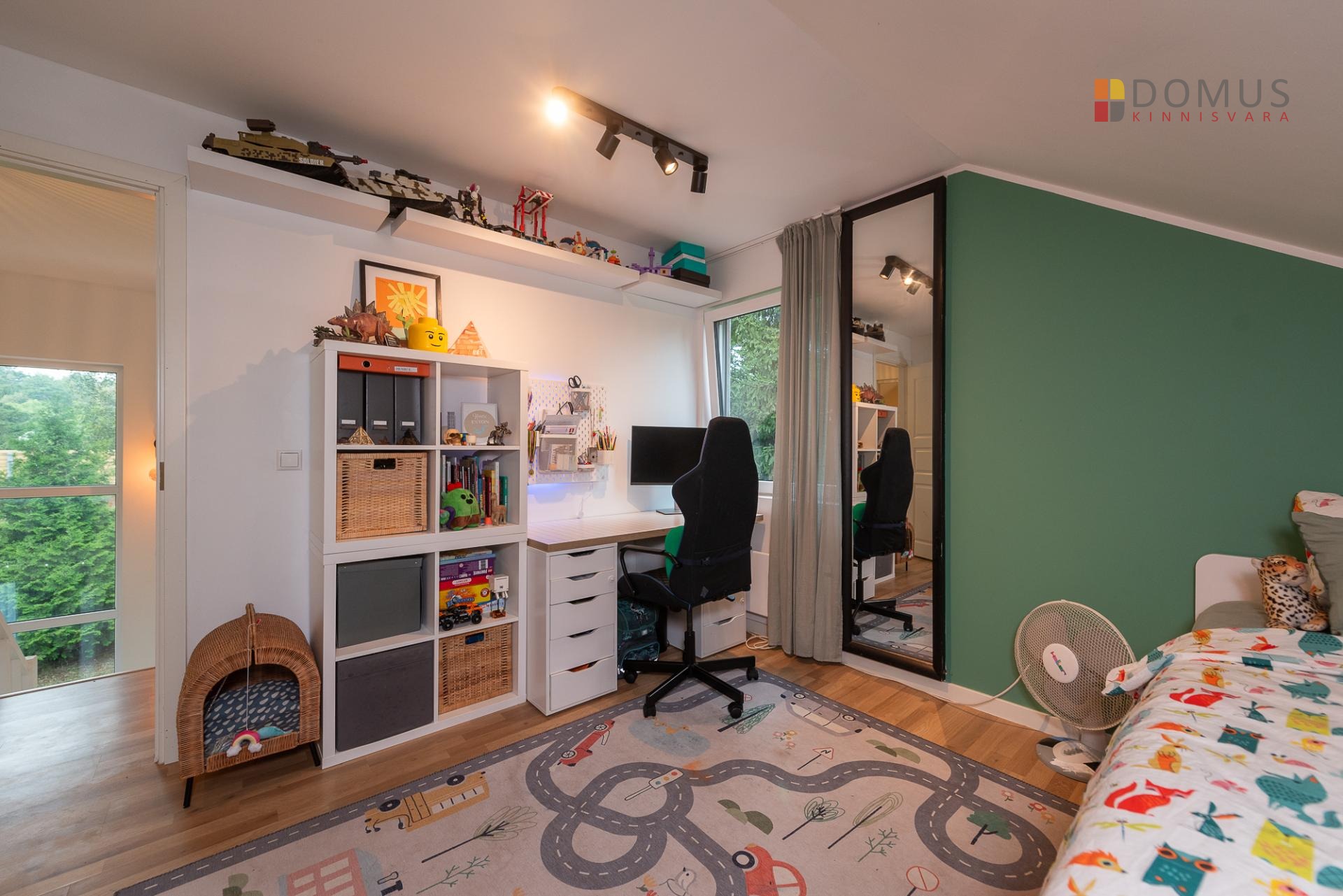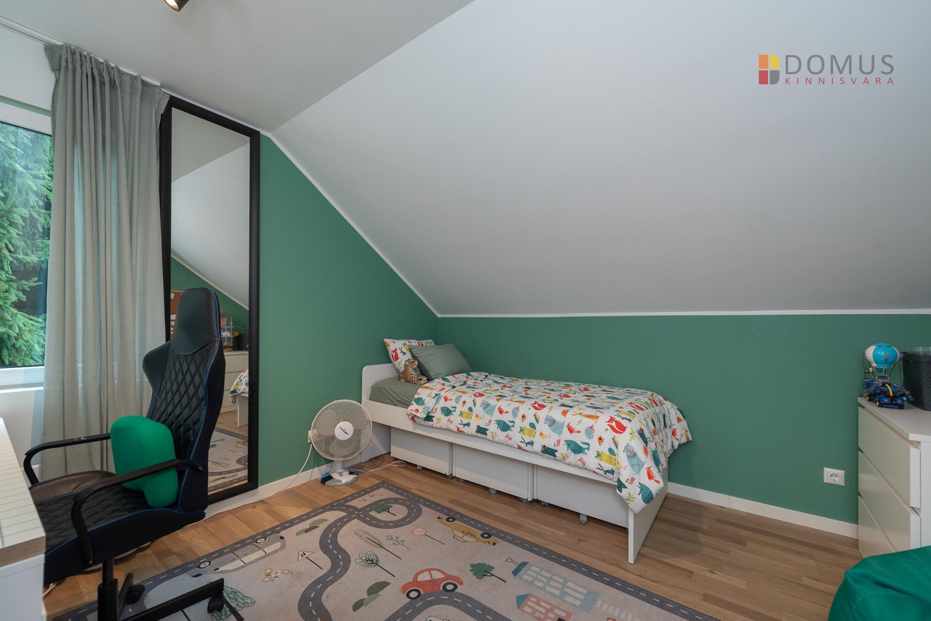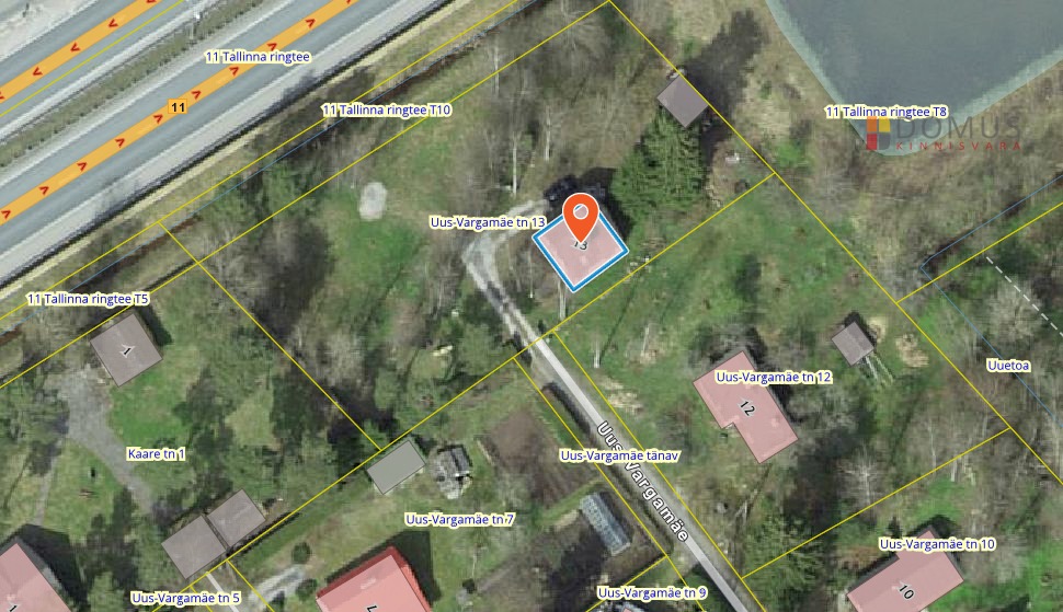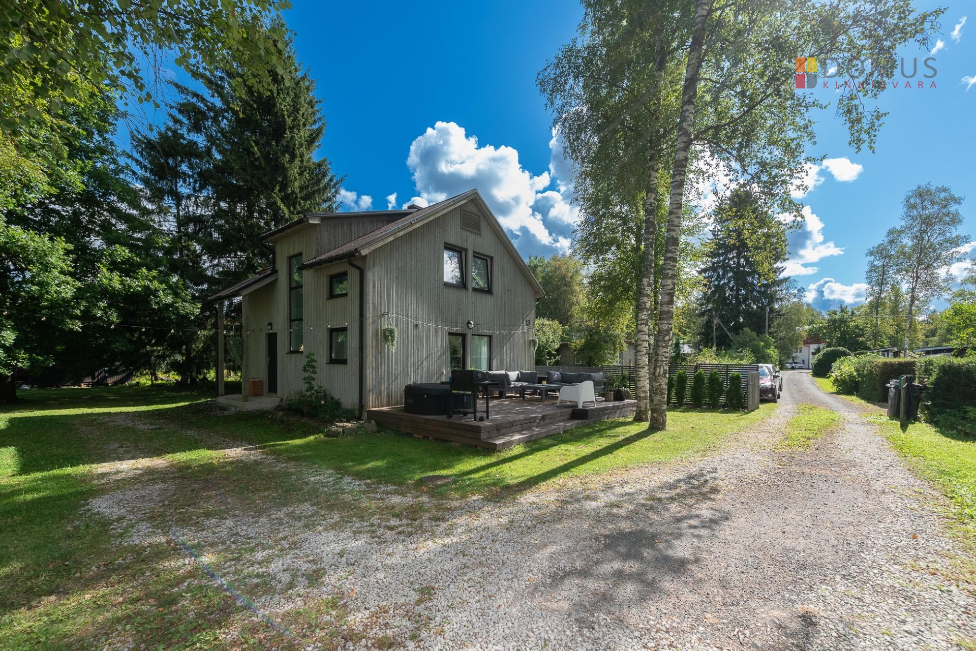 Kinnistu asub tupik tänava lõpus, mis tagab privaatsuse, ajas palju suuri puid ning lahedalt ruumi ka mitme auto parkimiseks.