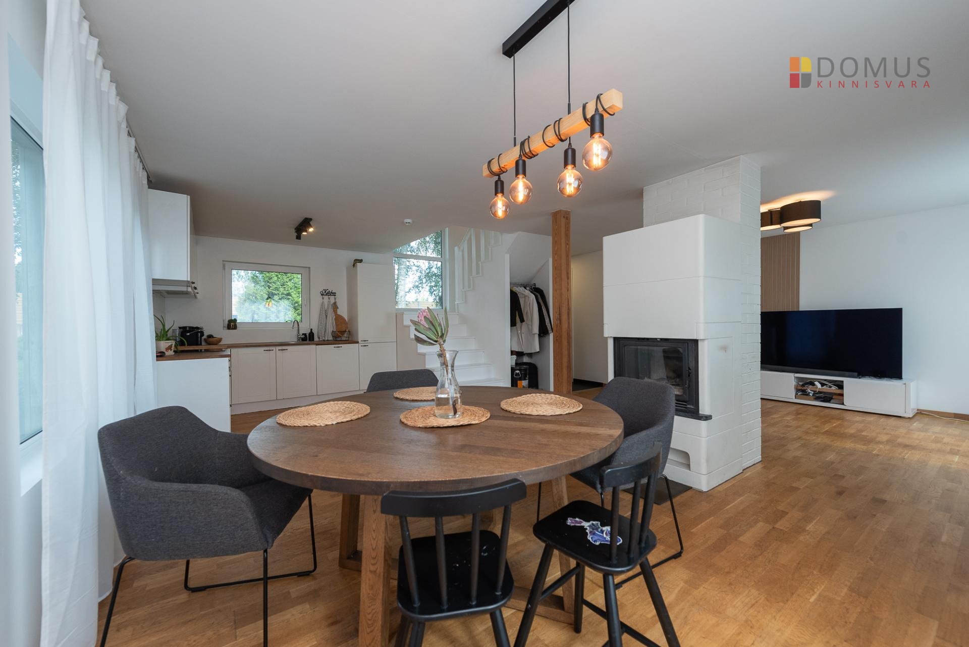 Majas esimesel korrusel ruumikas köök- elutuba , soojust salvestav kamin, esik, saun . Elutoast väljapääs avarale , päikselisele terassile. Köögis kaasaegne hele köögimööbel koos vajaliku tehnikaga.