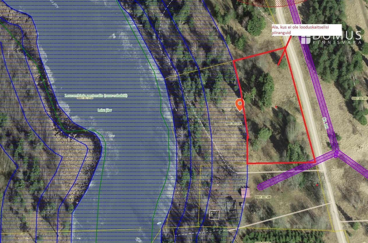 Lähtudes asjaolust, et antud kinnistu asub järve ääres, tuleb hoone kavandamisel arvestada ehituskeeluvööndiga ning kuna põhikaart näitab suures ulatuses antud kinnistul metsamaad, siis laieneb ehituskeeluvöönd piiranguvööndi piirini (looduskaitseseadus §38 lg 2). Vaata lisatud plaani.
