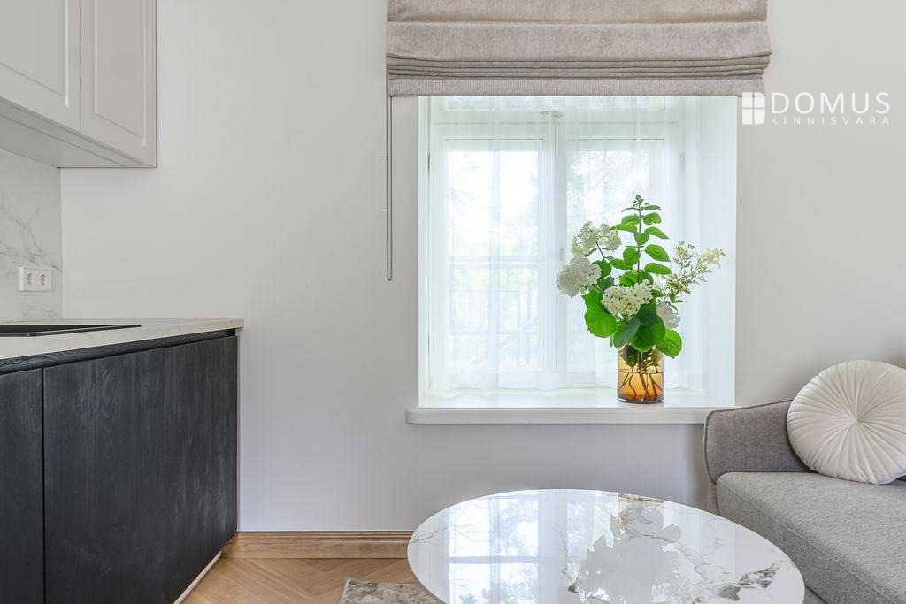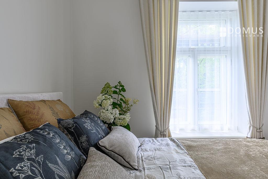 Elegantsed ja avarad aknad nii elutoas ( 15,8m²) kui ka köögis ( 8,7 m²) annavad palju avarust ja valgust kogu korterile, kust avanevad linna kaunimad vaated Botaanikaaia sisehoovi ilule. Korteris kaks mahukat magamistuba ( 16,6 m² ja 13,6m²) - kus leiab mitmeid võimalusi nii kauni mööbli kui ka võimsa garderoobi paigutamiseks. Korteri kaunimmaks pärliks on suur aknaga vannituba misa kaunistab luksuslik vann.