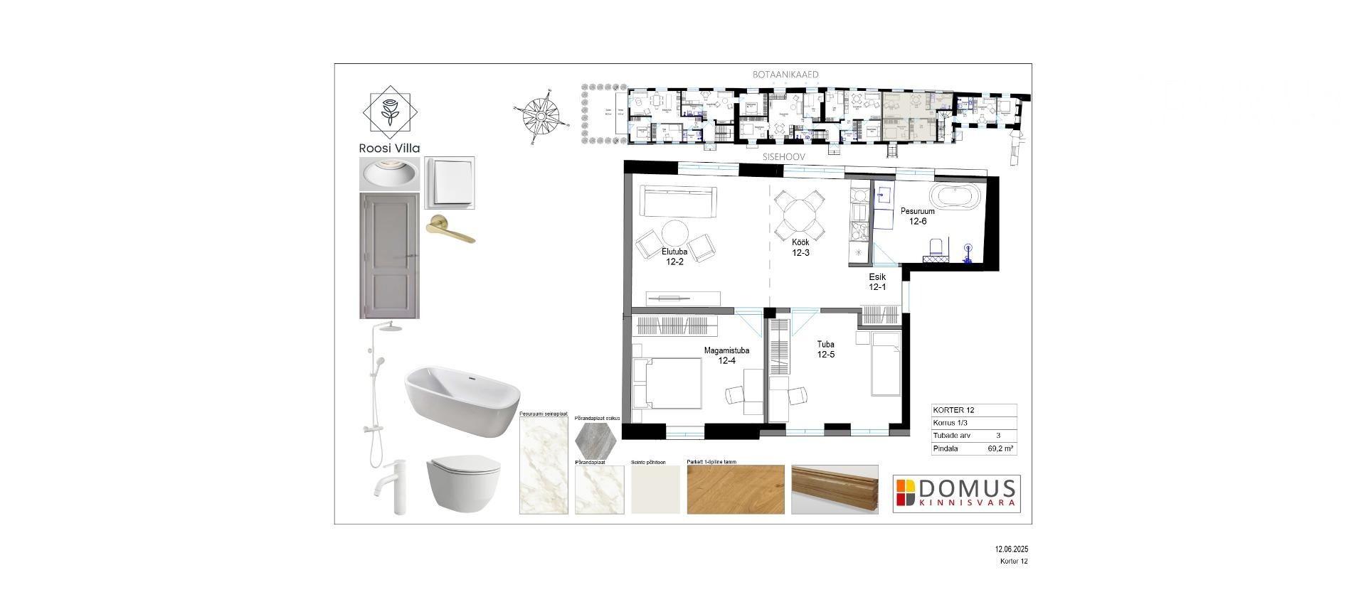 Roosi Villas ootavad uusi omanikke 2- kuni 5-toalised kodud, mille suurused jäävad vahemikku 35,9–107,3 m². Iga korter on disainitud nii, et kõik elanikud saaks maksimaalselt nautida kauneid Botaanikaaia vaateid.