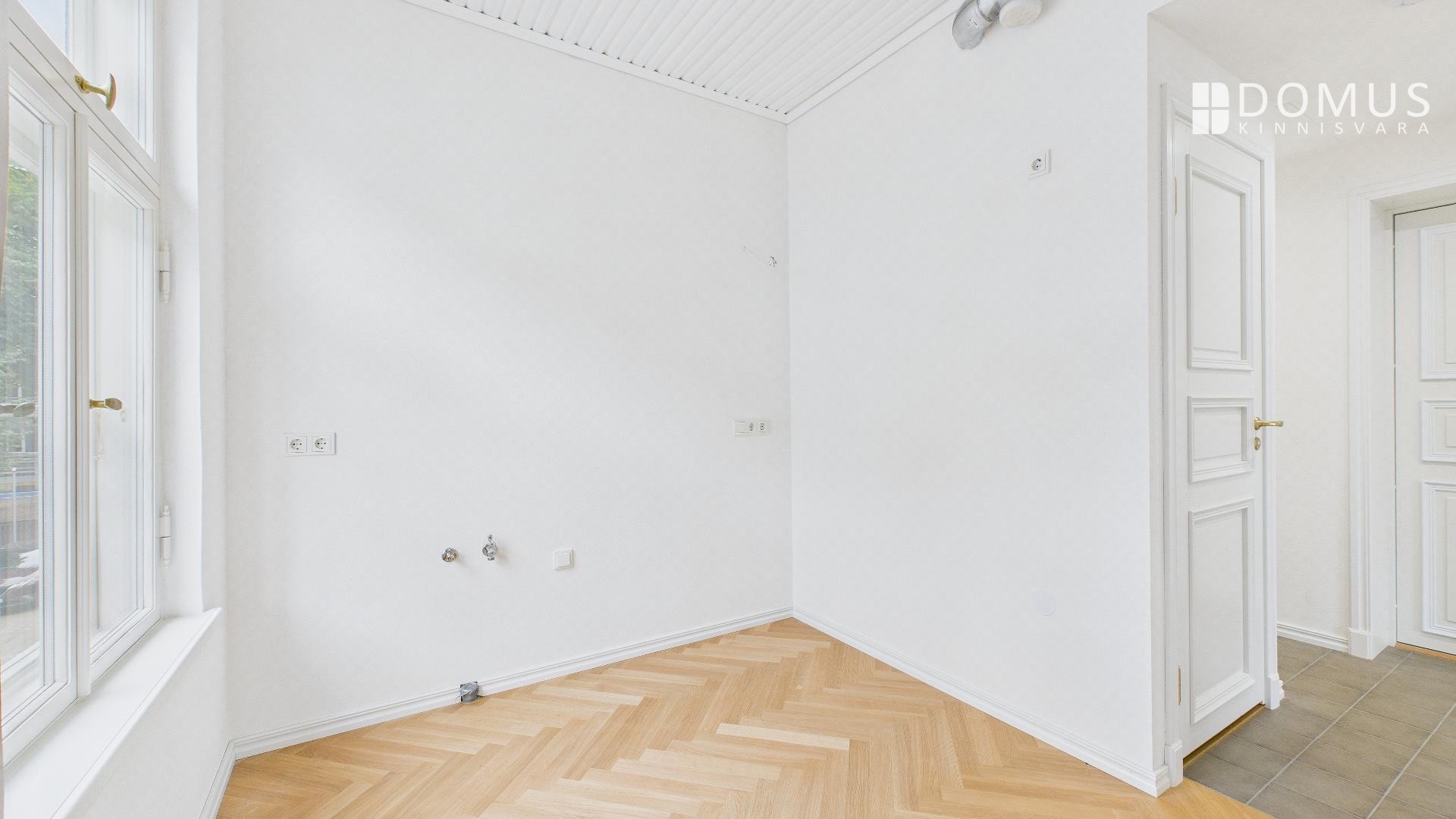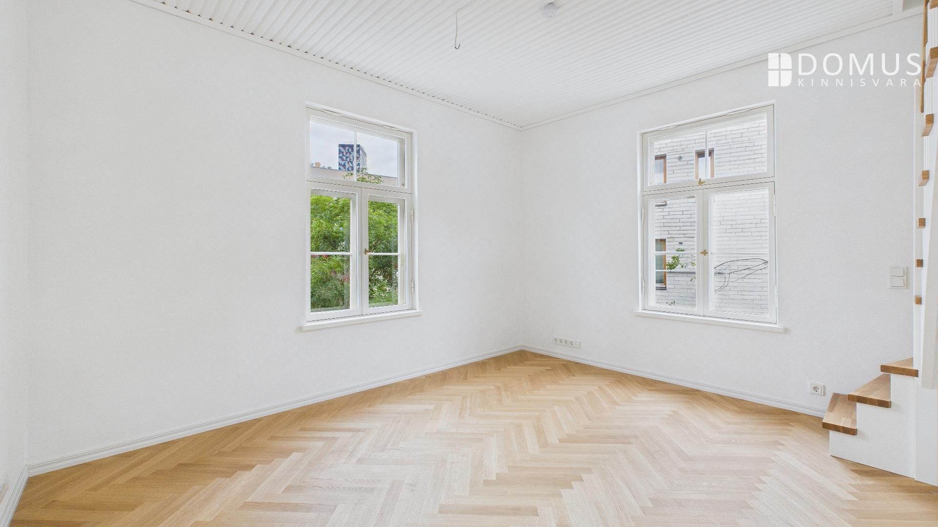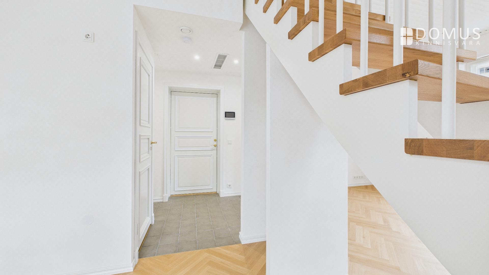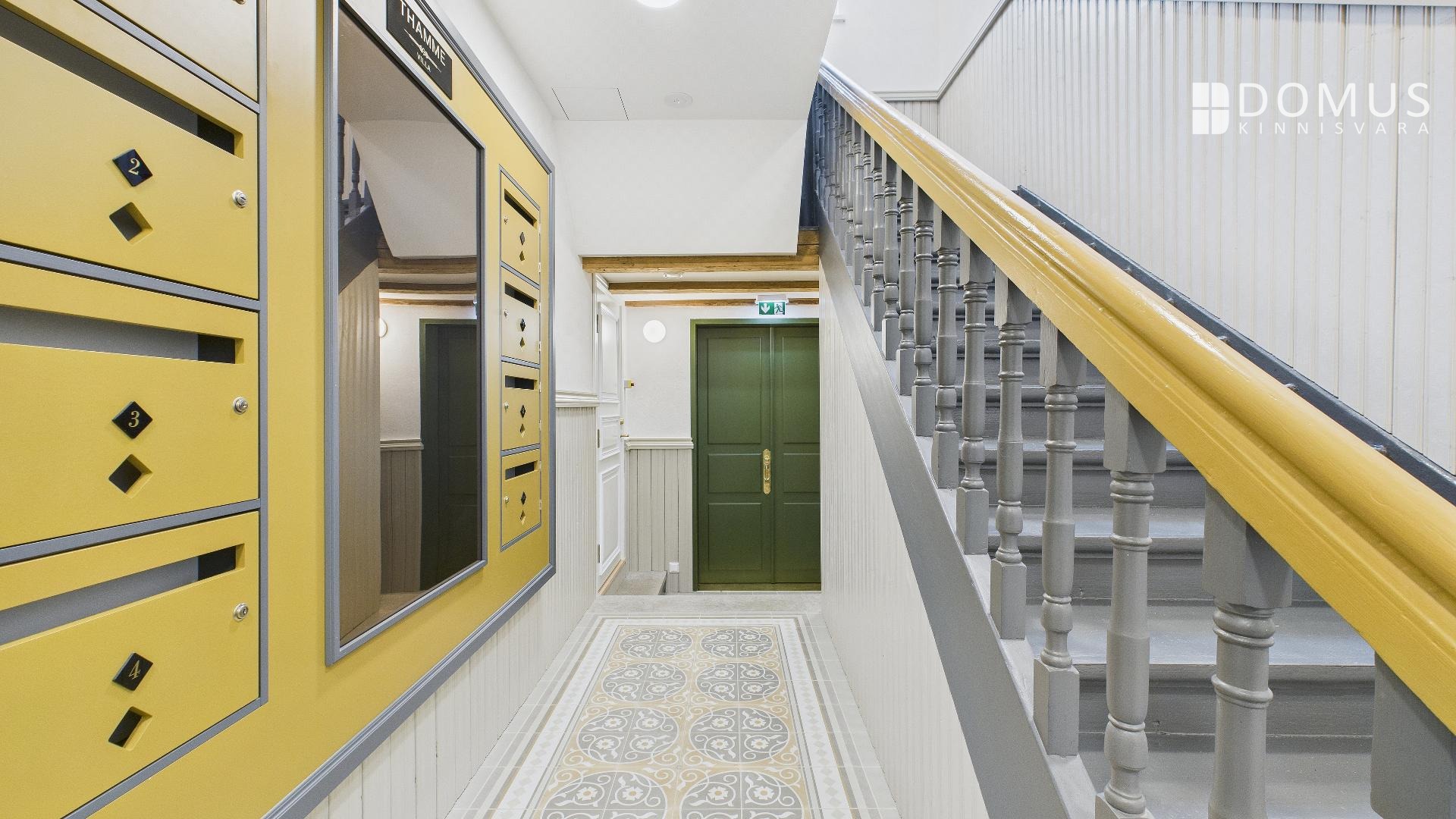 Аутентичное и величественное жилище с высокими потолками, большими окнами и уникальными архитектурными деталями, этот дом похож на один из символов района Кадриорг. Тем не менее, он находится всего в нескольких шагах от торгового центра Stockmann. Повседневная жизнь в этом особом здании исключительно комфортна, хотя, сидя в тихой перголе во дворе, вы легко можете забыть, что находитесь в самом сердце города.