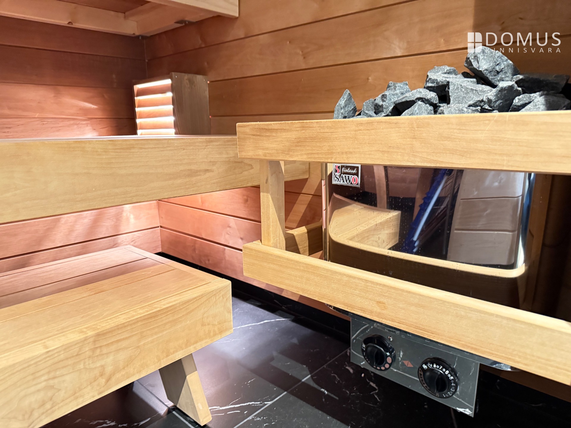 Также в ванной оборудована сауна с финской электрической печью SAWO.