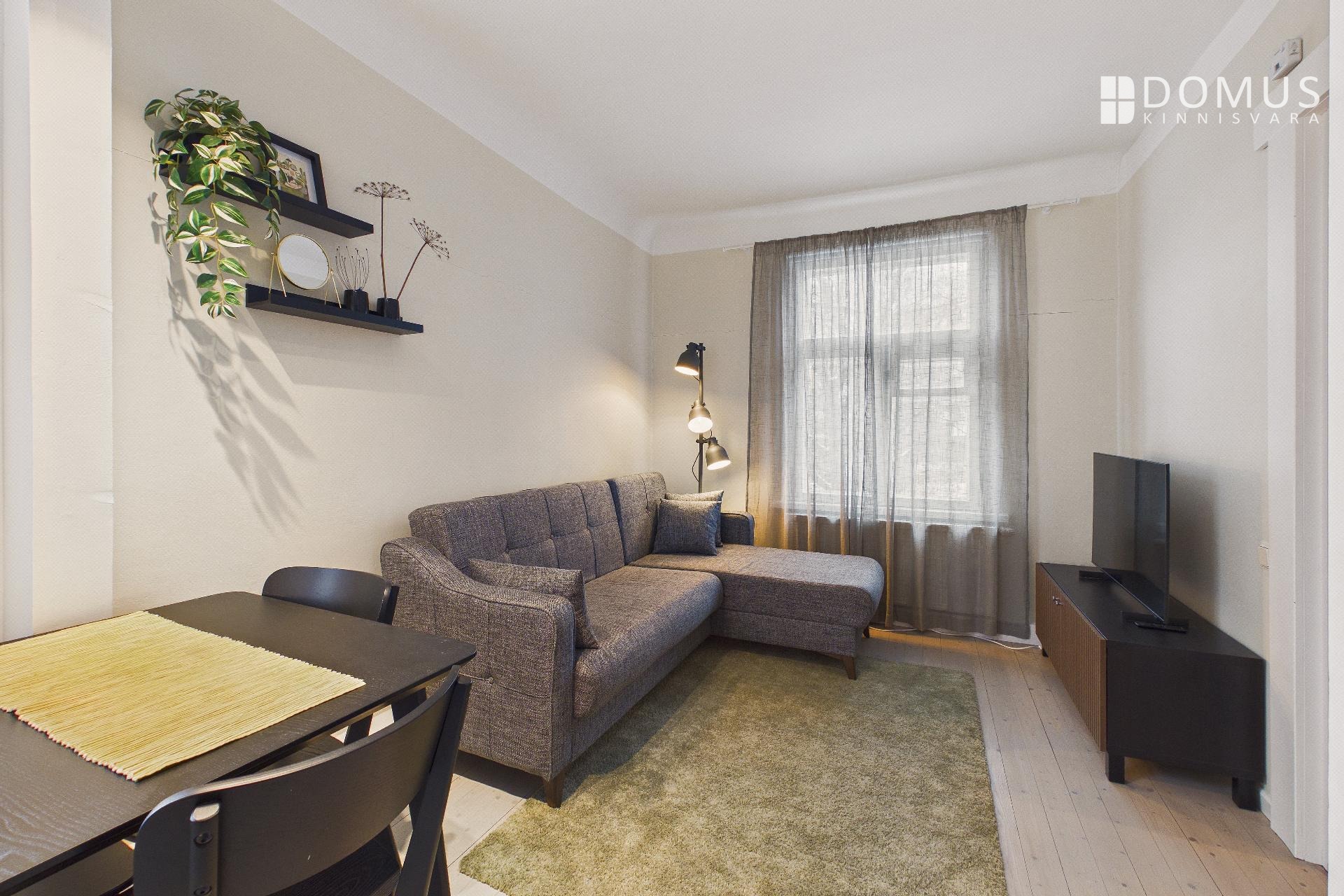 Открытая кухня-гостиная создаёт ощущение простора и света, спальня расположена отдельно. Квартира находится в хорошем состоянии, со вкусом меблирована и готова к заселению.