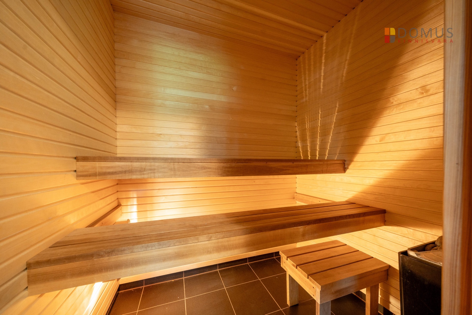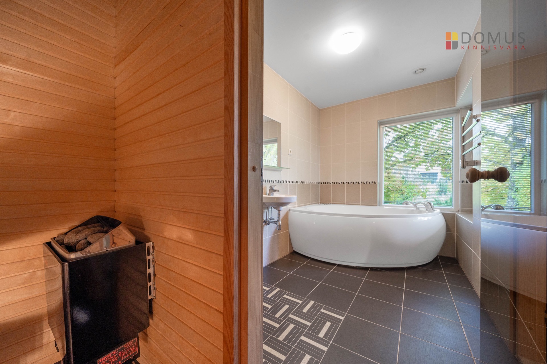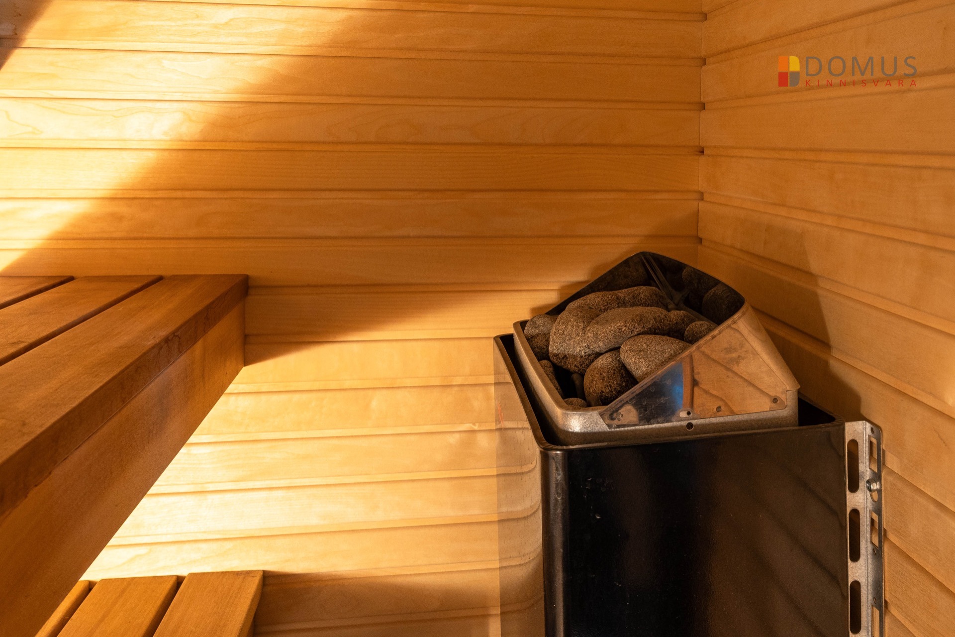 Отопление помещений обеспечивается газовым котлом, расположенным в гараже. На первом этаже теплые полы, в комнатах второго этажа радиаторы. Дополнительное тепло обеспечивает камин в гостиной. В ванной комнате рядом с сауной есть джакузи. Водоснабжение и канализация центральные. Интернет и ТВ-подключение предоставляются Telia по воздуху.