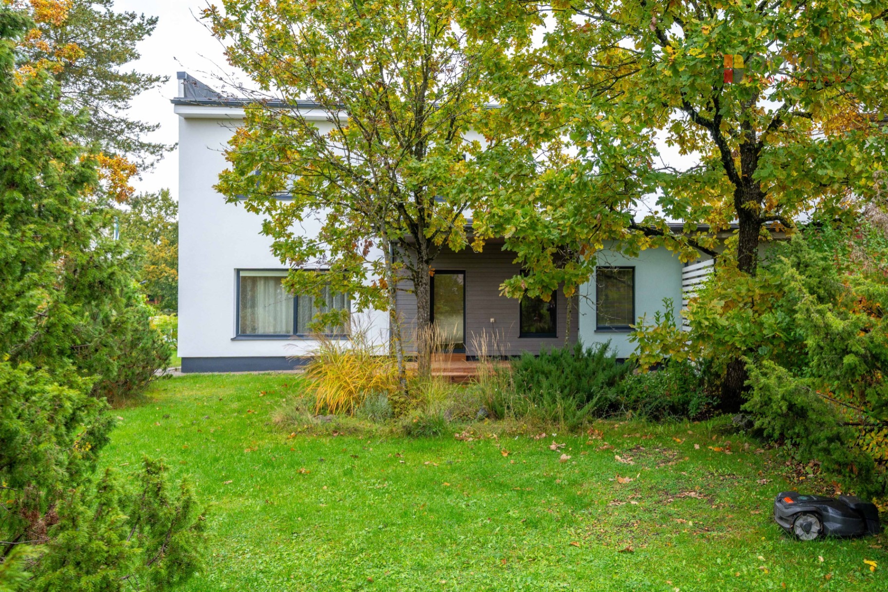 Кухонная мебель включает в себя вытяжку, холодильник Zanussi со встроенной морозильной камерой, керамическую варочную поверхность Zanussi, духовой шкаф Electrolux, посудомоечную машину Electrolux и стиральную машину Electrolux Perfectcare 700. Каменка для сауны электрическая. Гаражная дверь поднимается и опускается электродвигателем. Ворота для машины и гаражные ворота открываются с помощью пульта дистанционного управления. Газон вокруг дома стрижет роботизированная газонокосилка Husqvarna.