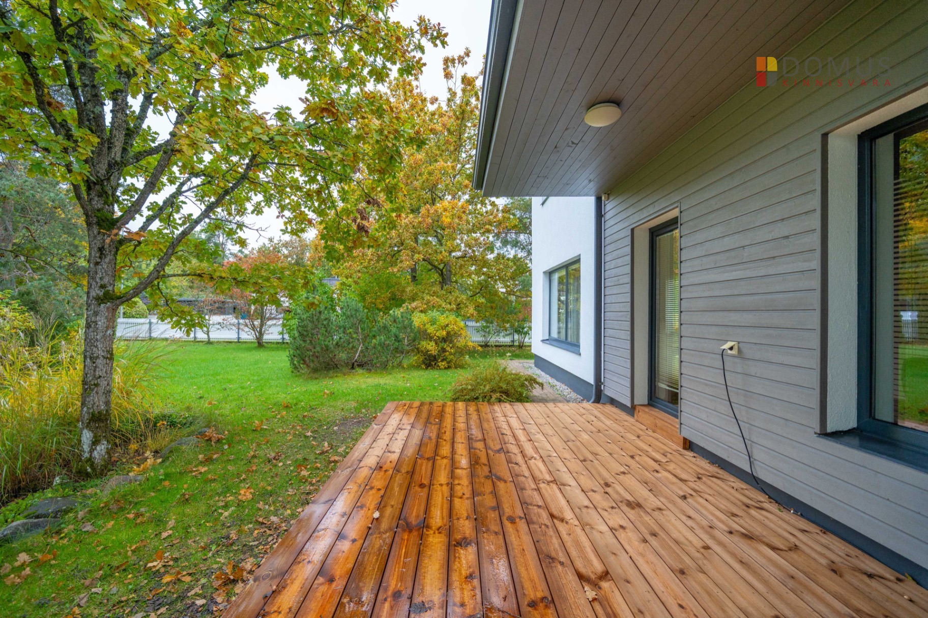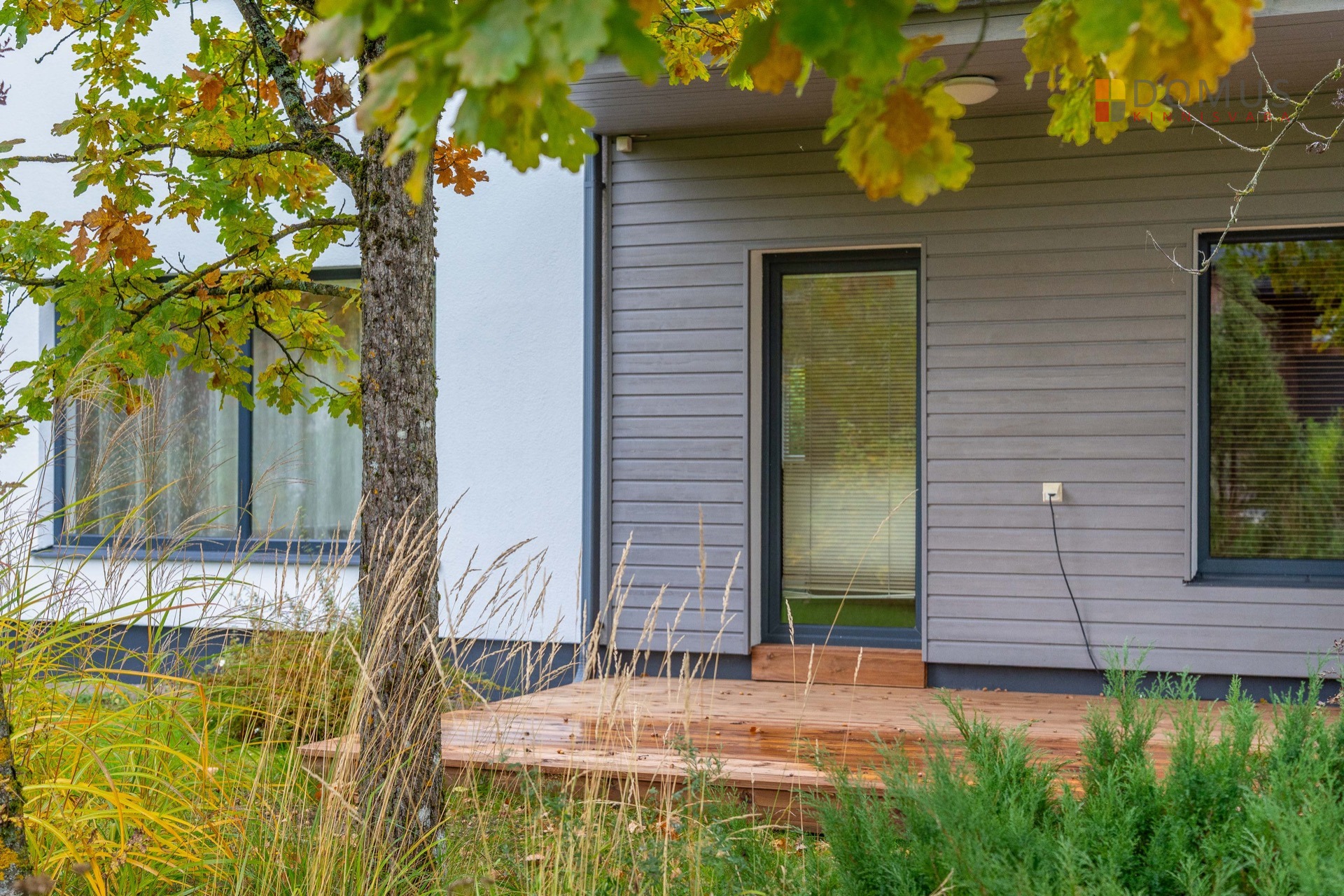 Внешние стены секции дома в основном оштукатурены и окрашены и частично покрыты деревянными досками. Недавно были вымыты и покрашены наружные стены дома, выровнены тротуарные камни, очищены и покрашены деревянные части, заменены террасные доски.