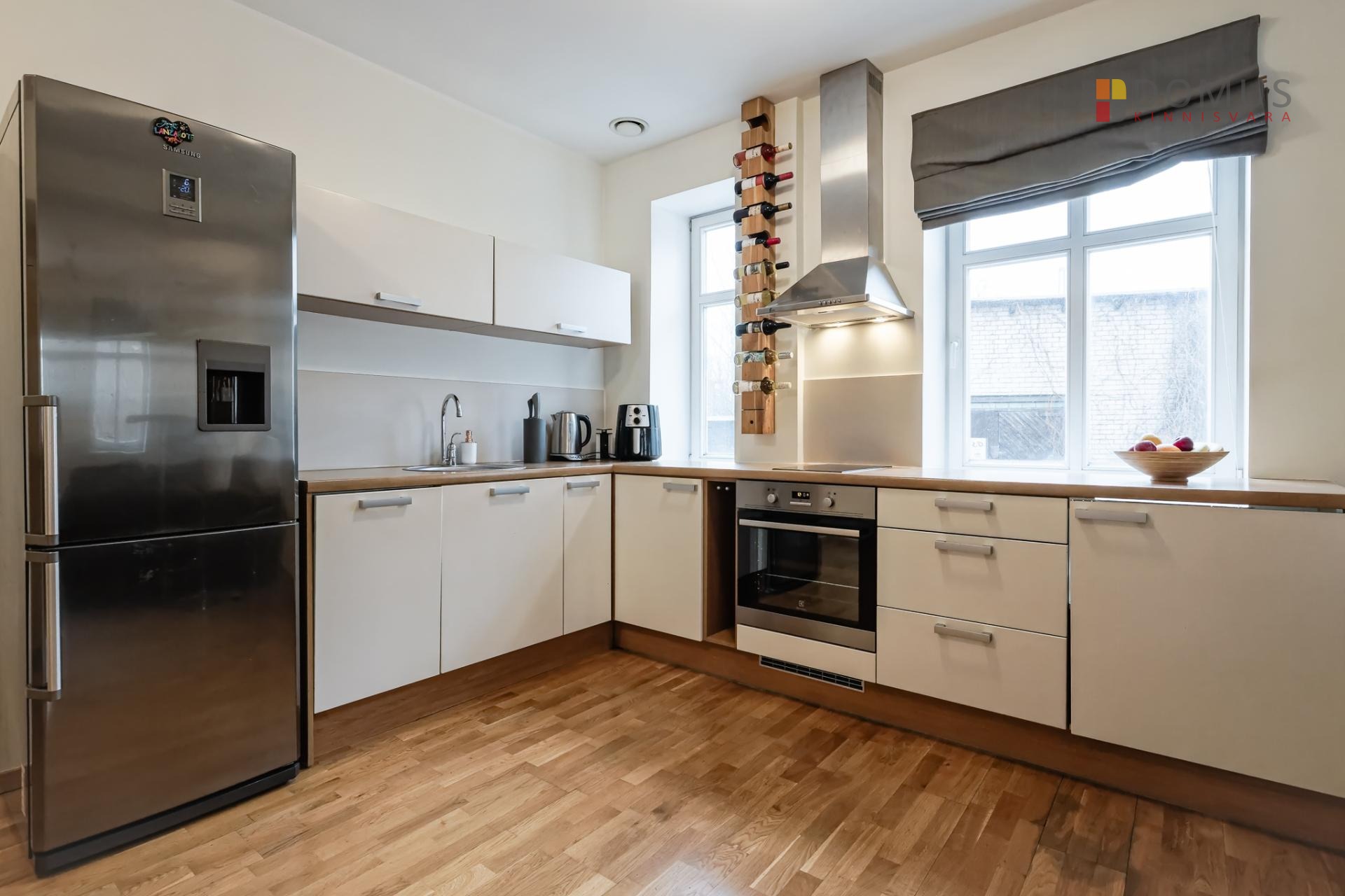 Квартира наполнена естественным светом, так как в нее проникают утренние и летние вечерние солнечные лучи, а благодаря множеству окон она всегда остается светлой. Гостиная просторная, кухня вместительная, и вся мебель и техника могут остаться в квартире.