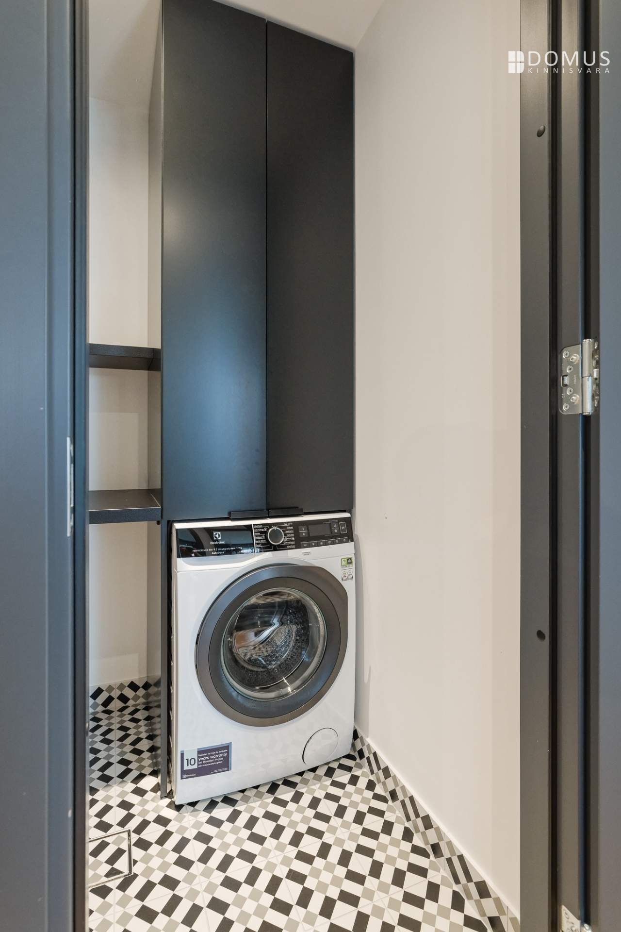 В квартире есть вторая ванная комната с ванной и сауной, отдельный туалет и отдельное подсобное помещение с уже установленной стиральной машиной.