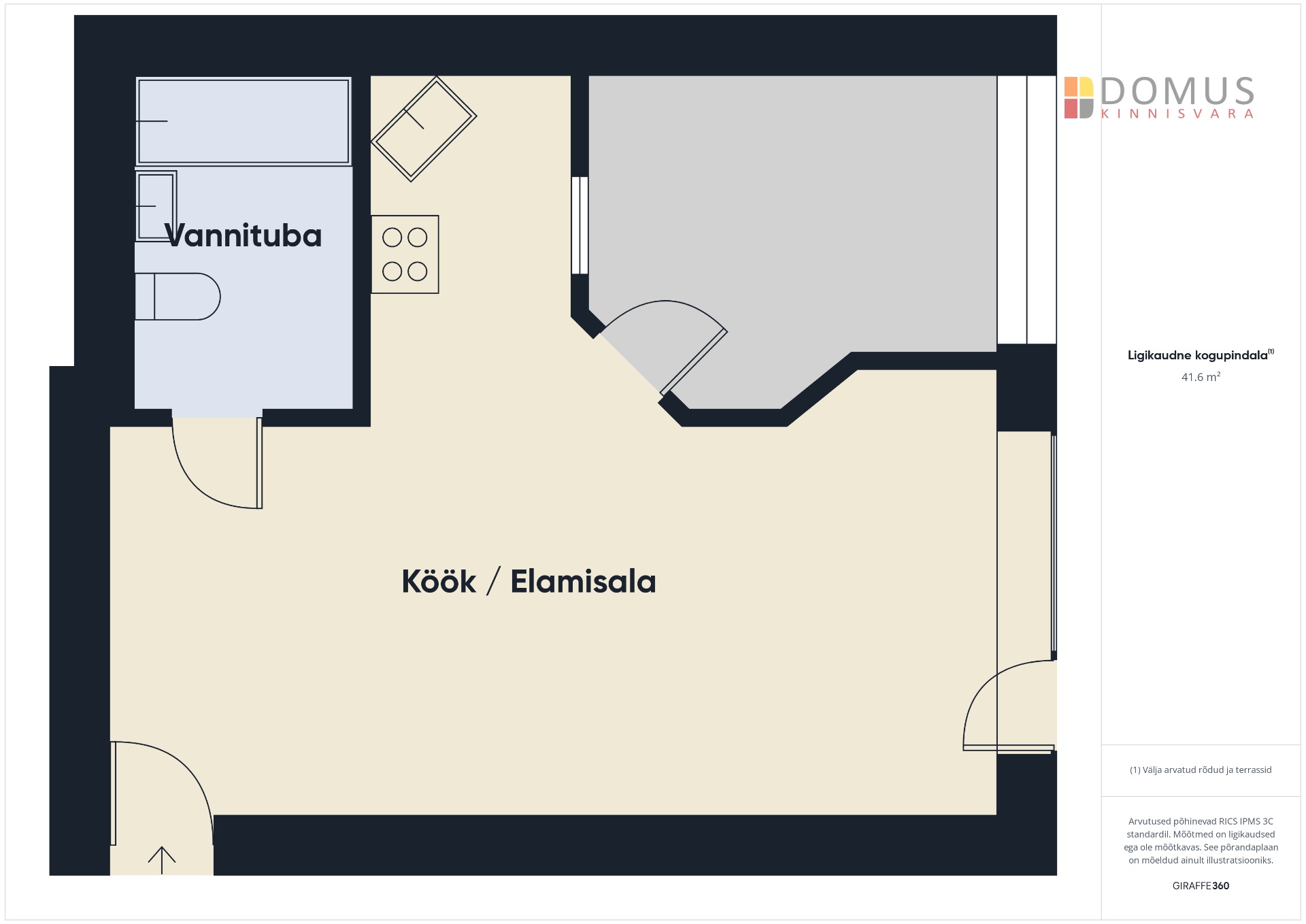 Общая площадь квартиры составляет 46,0 м², из которых жилая площадь — 41,5 м² + кладовая в цокольном этаже — 4,5 м².