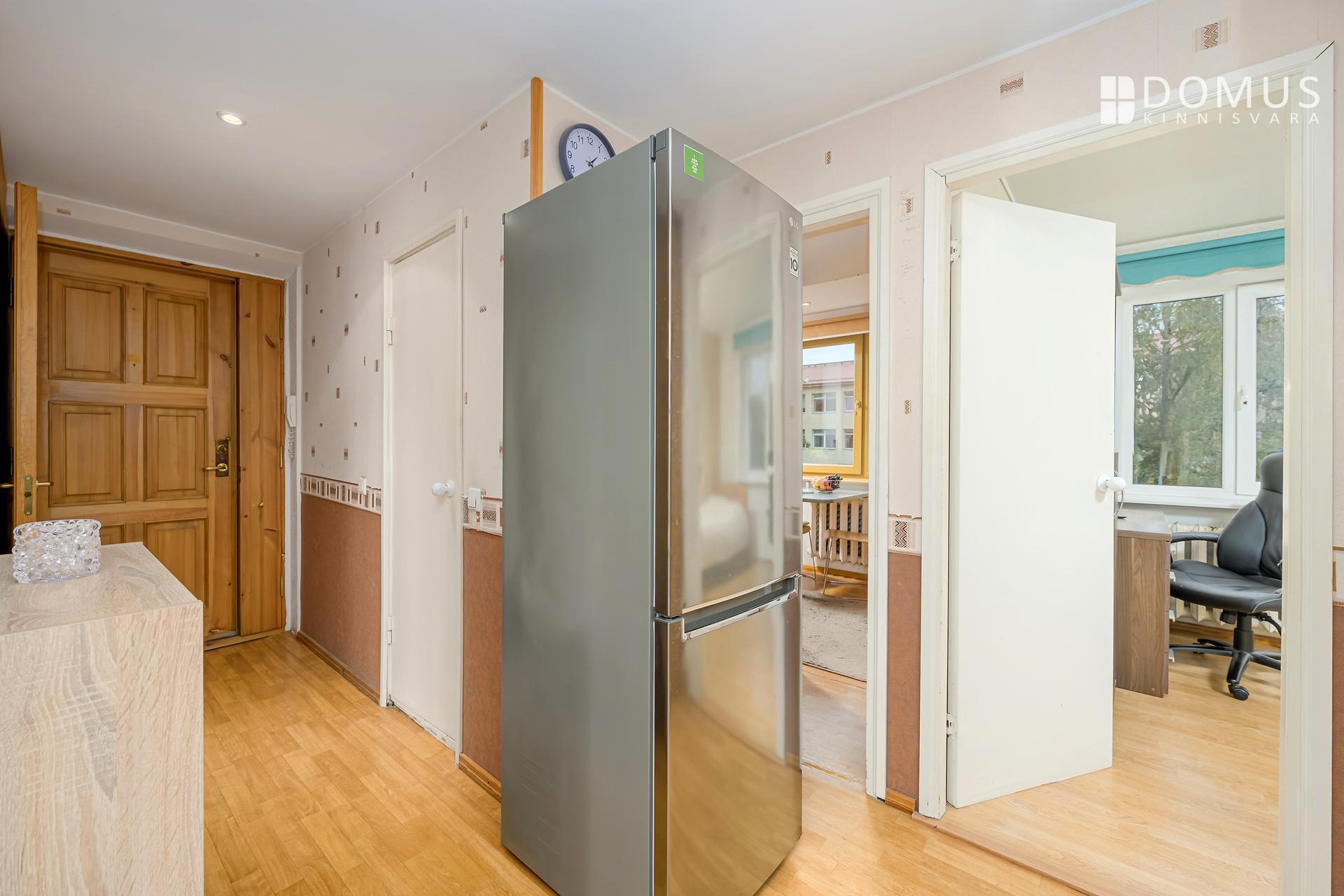 У квартиры две входные двери, поэтому звуки из подъезда почти не проникают в жилые комнаты.