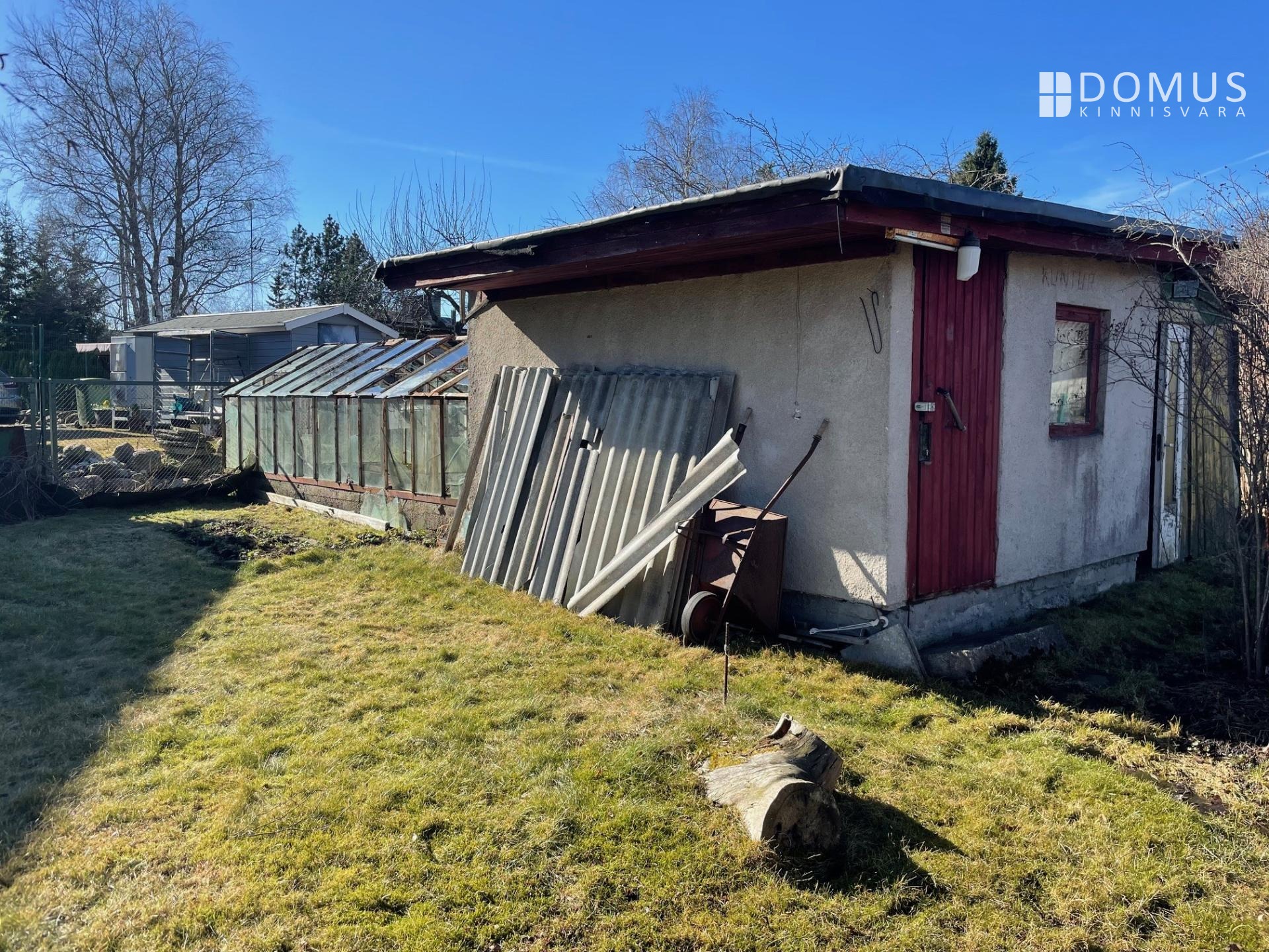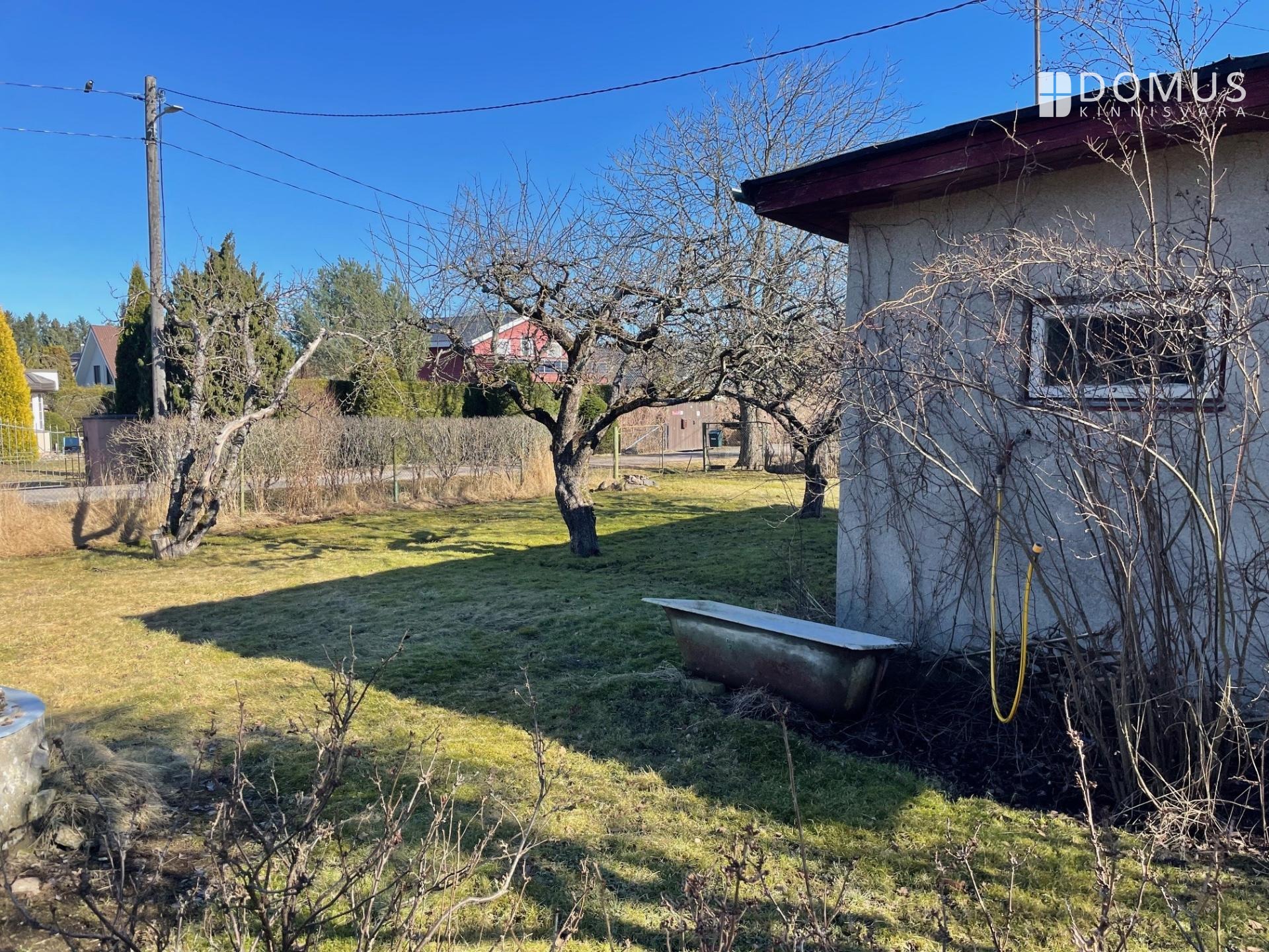 В то же время его можно временно использовать, например, для хранения вещей на период строительства нового дома. На участке также есть сауна возрастом около 10 лет, имеется туалет и возможность мыться (в доме проведена вода). Кроме того, на участке есть старый колодец, который не использовался много лет, и владелец не несёт ответственности за качество воды.