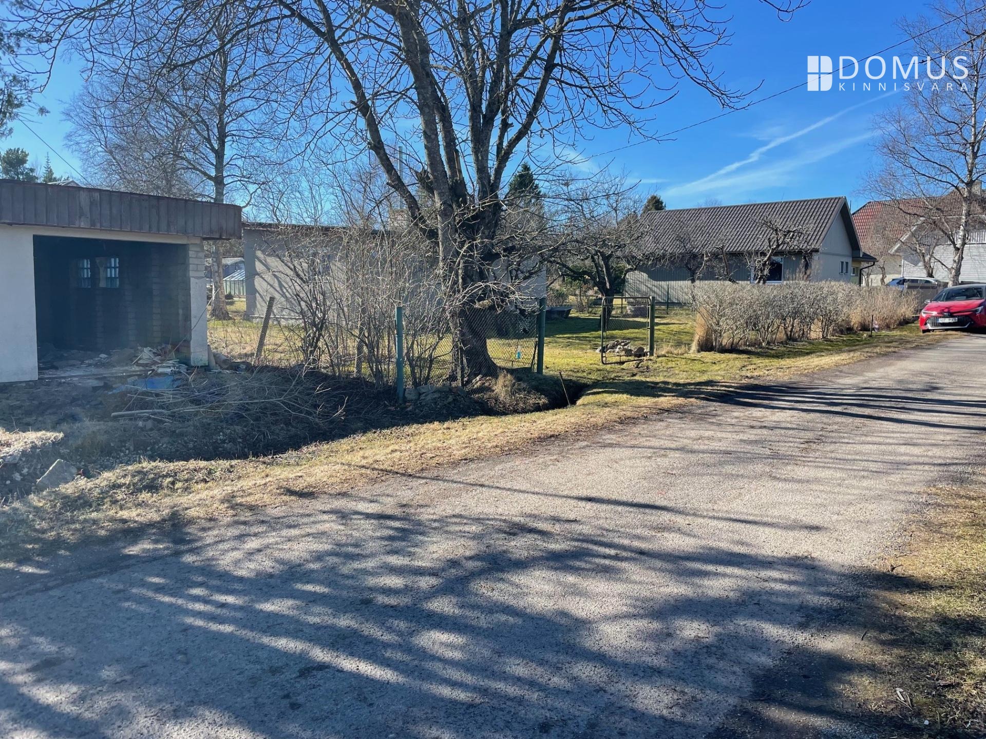 Предлагаемый участок расположен «правильной» стороной относительно подъездной дороги, и при строительстве дома у дороги двор останется за домом, с южной стороны. В доме имеются подключения к водоснабжению и канализации, подведён кабель Telia, электрическое подключение составляет 3×16A.