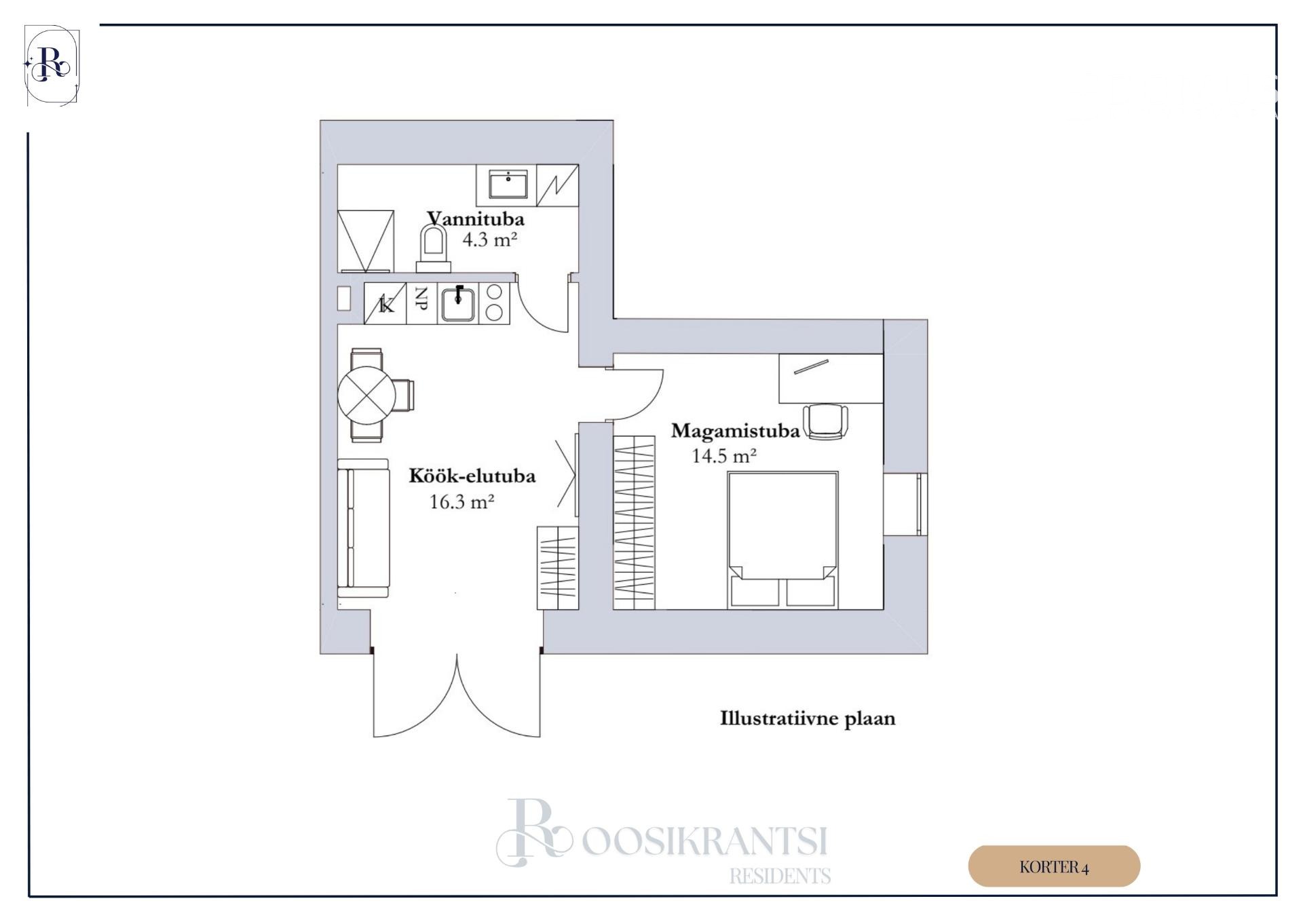 Продать квартира, 2 комната - Roosikrantsi tn 8/2-3, Kesklinna linnaosa, Tallinn, Harju maakond