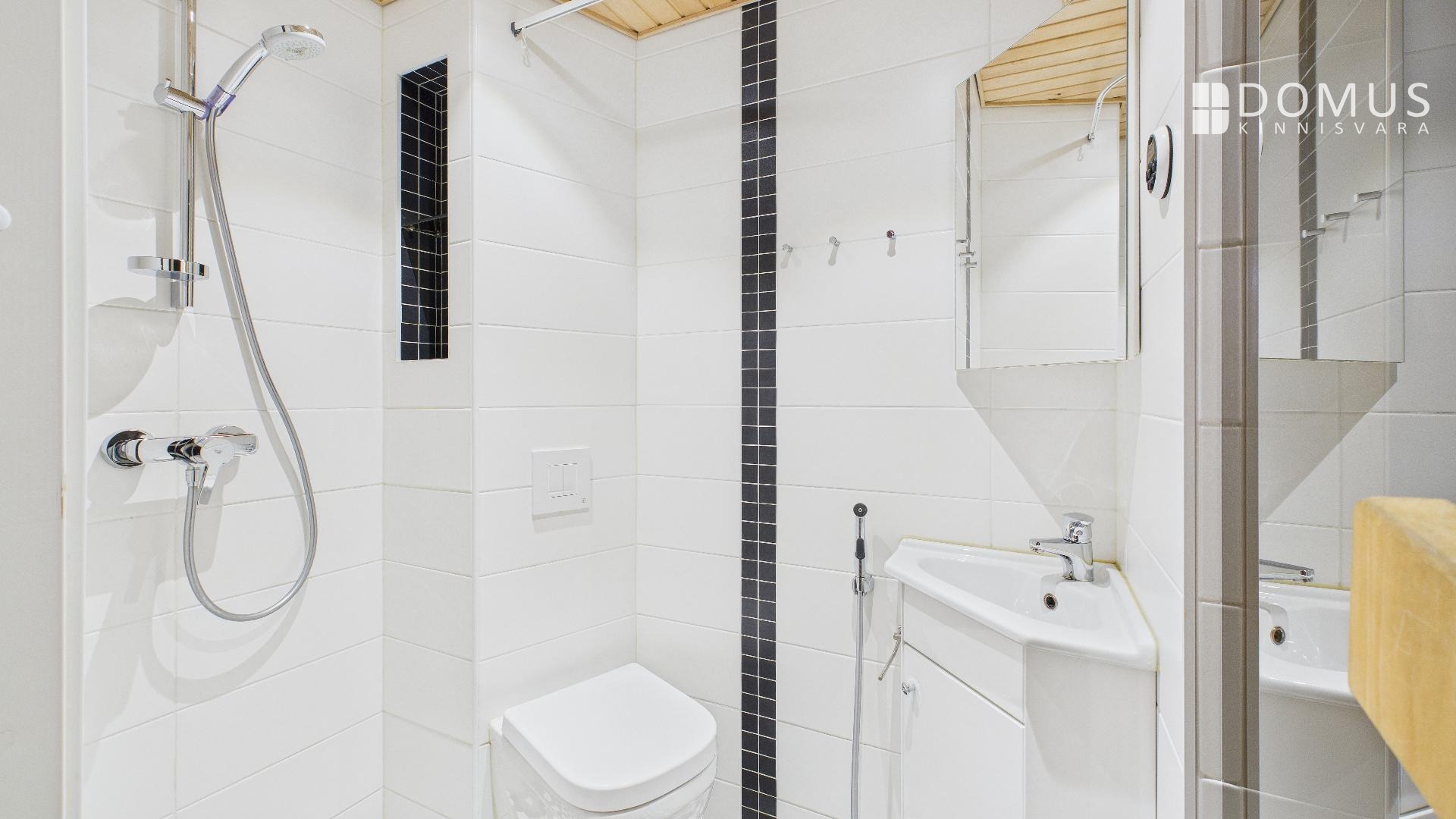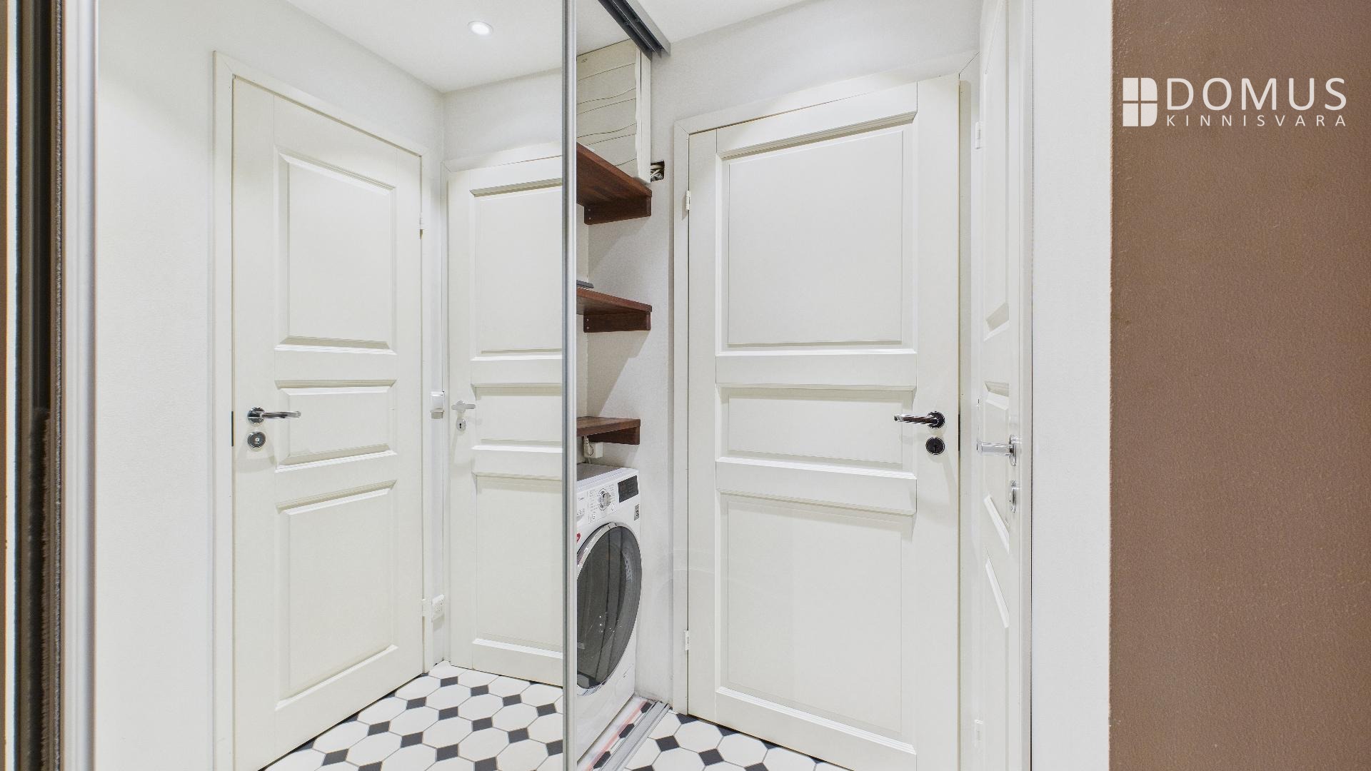 баня, кабельное ТВ, защитная дверь, стиральная машина, мебель, паркет, холодильник, душ