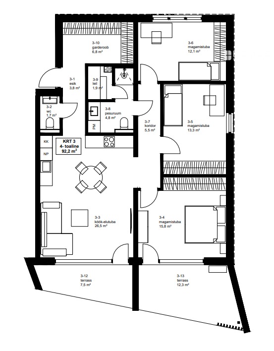 4 комнат
