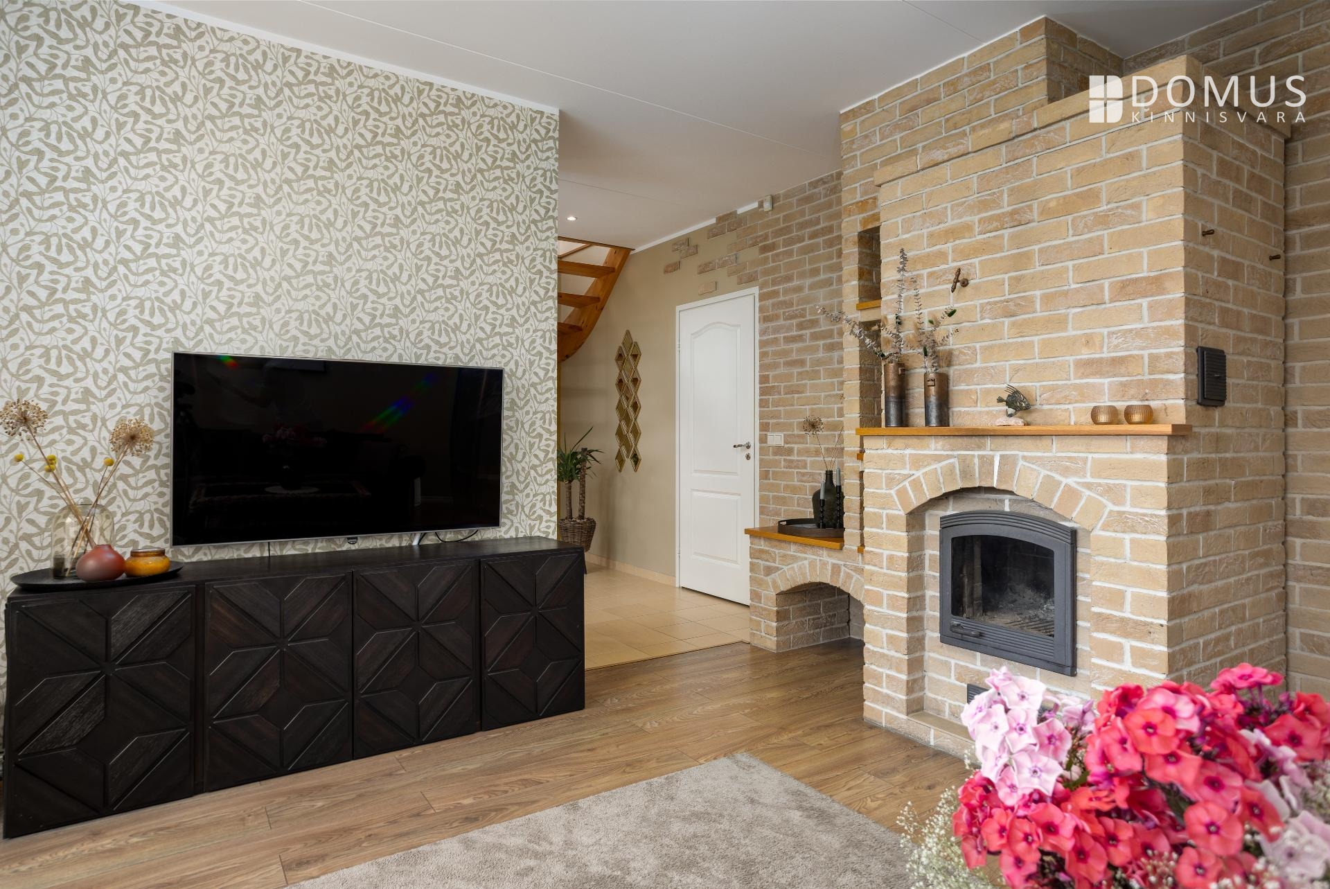 Дом оснащён современными и гибкими инженерными решениями. На первом этаже в спальнях установлены радиаторы, в остальных помещениях — водяное напольное отопление. Дополнительно в гостиной есть каминная печь, а на кухне установлен тепловой насос воздух-воздух, который обеспечивает как отопление, так и охлаждение. Основным источником отопления является центральное газовое отопление. Такое сочетание систем позволяет гибко управлять расходами. Вода центральная, её нагревает газовый котёл. В доме проведено оптоволоконное подключение Telia, обеспечивающее быстрый интернет и современные возможности связи и медиа.