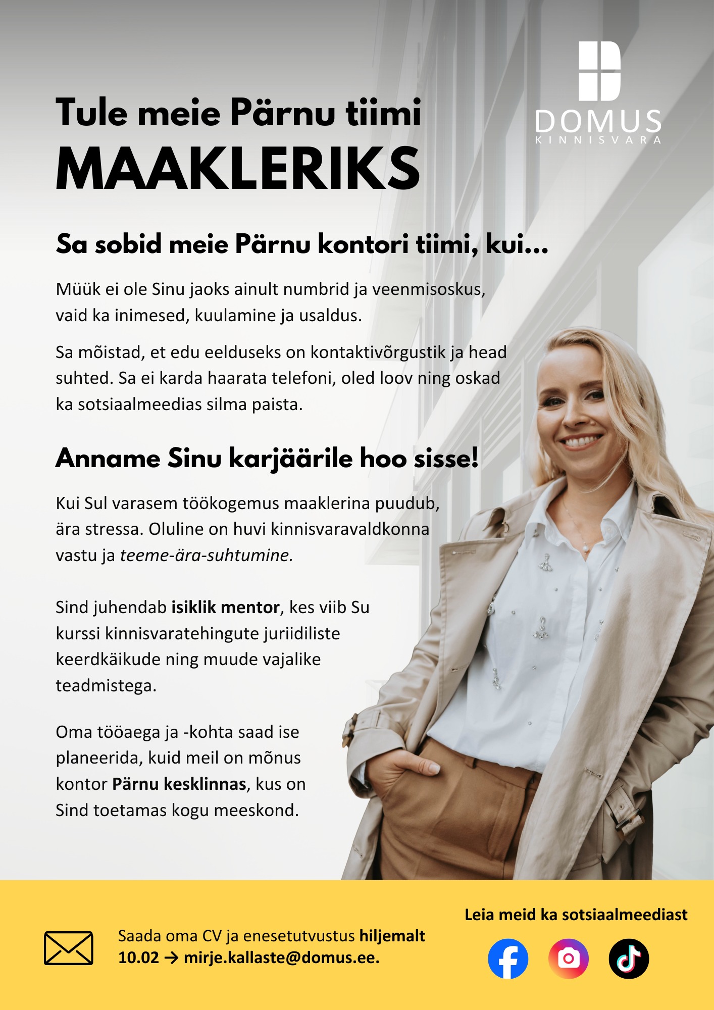 Tule meie Pärnu kontorisse maakleriks!